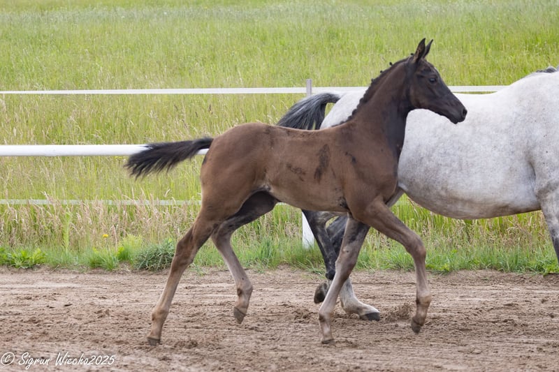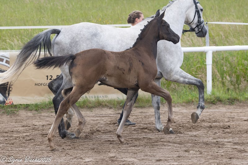 This enchanting princess is the daughter of a hero: Her father Finckenstein achieved numerous great successes on the Grand Prix stages, including in 2018 as a member of the Danish team at the World Equestrian Games in Tryon, USA. His offspring are often noted for their excellent character and balanced temperament. In this regard, his daughter is an exemplary ambassador, beautiful, highly noble, and full of grace - just like her distinguished maternal family. She presents herself with long legs, light-footedness, always in perfect balance, and emphasizes her smoothness. Her maternal grandfather is currently winning in S-level dressage tests and has made a significant name for himself as a producer of gait and rideability. Her grandmother is a full sister of the premium stallion Guzzi, who has been successful in S-level dressage. Well-developed and in excellent condition both internally and externally!