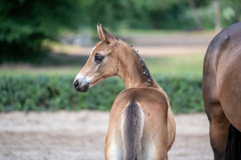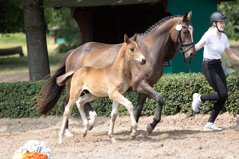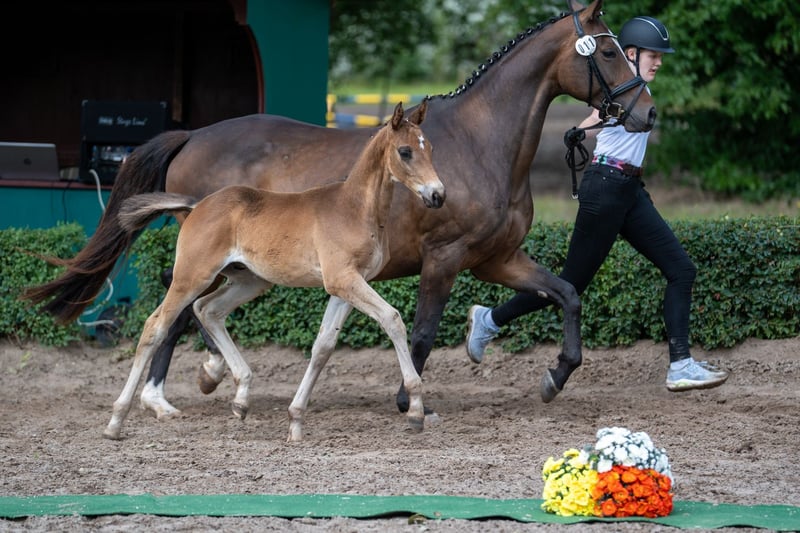 The father of Kaiser’s Erbe was the celebrated winner of the Trakehner Stallion Market 2022 and is now making a remarkable debut as a sire. The very close relative of the Grand Prix stars Kaiserdom TSF, Kaiserkult TSF, and Kaiseradler, as well as the much-admired licensing winner Kaiser Milton, has passed an outstanding performance test and will continue to make his mark under expert training. His "premiere performer" impresses with masculinity, his distinctly masculine nobility, significant body parts, and moves with accentuated diligence and rhythm in admirable dynamism. On the mother’s side, the Grand Prix star Münchhausen TSF and the dressage champion Herbstkönig combine two renowned sires of rideability, while Ovaro and Mago xx add two highly valued dressage stars that have been successful up to Grand Prix level.