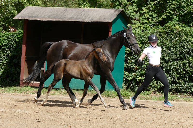 In vendita un promettente stallone Trakehner, nato a giugno 2025. Questo baio scuro non solo colpisce per la sua elegante apparenza, ma anche per il suo enorme potenziale nel dressage. Lo stallone mostra già ora una qualità di movimento promettente. È stato educato in modo adeguato alla sua età e ha un temperamento molto equilibrato. Per ulteriori informazioni o per manifestare interesse, sono a vostra disposizione.
