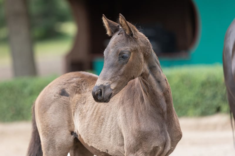 The father, awarded the elite title, holds a prominent position among the Trakehner stallions; he reliably passes on nobility and beauty, dynamic movement, and high rideability. His son, born in March, is also characterized by a very special nobility and distinction; he impresses with his harmonious and rideable body parts, and he moves dynamically and lightly, always in rhythm and in beautiful self-carriage. He is also a gem in terms of character: confident, very people-oriented, he impresses with his exemplary attitude towards all tasks presented to him, naturally halter-trained, loading-friendly, and raised in a natural herd environment. A promising young talent for riding, with his great abilities for a promising career, he will only bring joy.