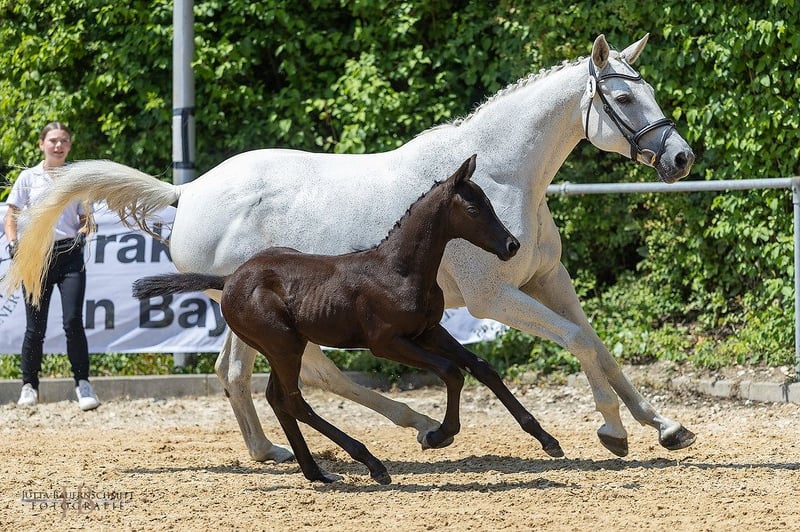 The father, Zauberdesign, is already making impressive appearances at a young age - as a winner in age-appropriate dressage competitions and also through his top-notch performance test. It is no wonder, as he represents the high prominence of the major dressage stages with his father Schwarzgold and his maternal ancestors, the internationally successful Grand Prix heroes Monteverdi TSF and Gribaldi. With his son, he delivers an impressive breeding debut. Highly noble, clearly in type, harmoniously and significantly constructed, this candidate presents himself for future major sporting tasks. Always in rhythm, in emphasized self-carriage, he moves diligently and accentuated, with excellent dynamics. The mother represents a top-class sport horse lineage. From the maternal performance dynasty also comes the internationally celebrated Kaiser Wilhelm TSF and the main sire Kentucky.