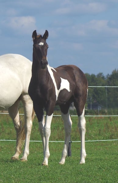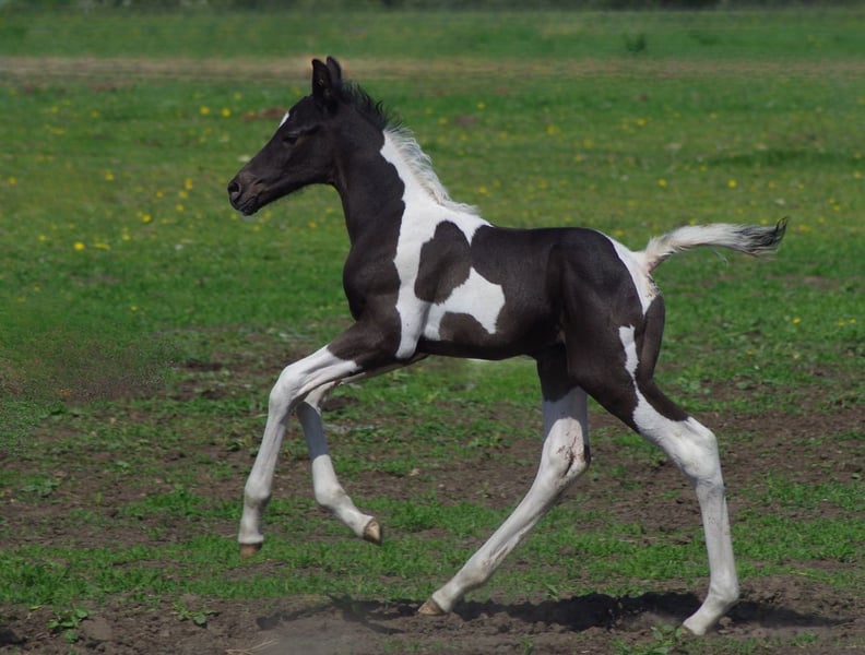 Sehr schickes großrahmiges Trakehner HF in Sonderlackierung Smokey black tobiano, die einzige in der Welt! Smokey Black bedeutet, dass Sie kein gewöhnlicher Rappe ist, sondern des Creme-Gens trägt, Sie ist ein sogenannter „Palomino Black“. Er ist eine Grosse, starke Fohlen mit tollen Bewegungen; korrekt, gesund; sehr klug und friedlich. Der Vater, Honeybrook Chapman, wurde in Großbritannien geboren und galt als einer der vielversprechendsten Camaro-Söhne. Camaro selbst war der erfolgreichste Tobianoscheck-Trakehnerhengst mit mehreren Platzierungen bis zur Klasse M in Vielseitigkeits- und Springprüfungen, er hat auch an den Deutschen Bundeschampionaten teilgenommen und sich zweimal in den ersten Rängen platzier. Muttervater ist Vollbluthengst Goldmaker von RFF The Alchemist xx, Mutter von Mutter ist polnischer ostpreußischer Trakehner Linie. Endmass geschätzt ca 175 cm. Volle Trakehner-Papiere, Steht in einem kleinen Gestüt in Estland, kann problemlos nach Deutschland gebracht werden. Zwei Vollgescwister wurden bereits nach Deutschland importiert. anneli.kadakas@gmail.com https://www.facebook.com/reinu.talu/