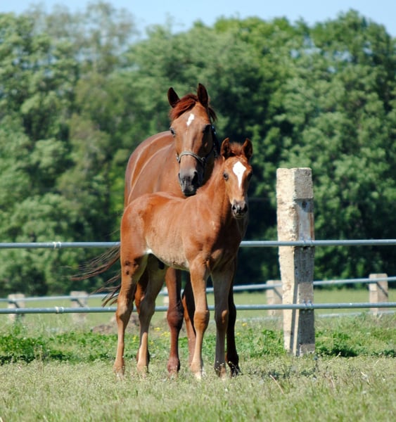 The colt, born on April 5, 2024, is a rarity due to his absolute outcross pedigree and his attractive dark chestnut color alone. He is a son of the Anglo-Arabian premium stallion Noupier x by Duke of Hearts xx and a daughter of the Olympian and World Championship participant in military sport Troupier x. Our "Le Noble TN" is in turn a son of the Pr.St. La Vita TN by Cavallieri xx - Vespucci (Ramzes x line), the full sister of our Pr.H. Le Chevalier TN, the sire was the winner of the performance test and also the winner of his stallion performance test for eventing horses in Marbach. This pedigree, his conformation, correctness and quality of movement led to the highest possible rating at the foal registration, the 3-star premium and the recommendation of the breeding management to raise him as a stallion.