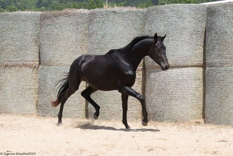 Sweetwaters Saxon urodził się 25.03.2022. Chcielibyśmy przekazać tego młodzieńca, któremu wszystkie drzwi powinny być otwarte. Wyposażony w wiele go i mechaniki, idealnie proporcjonalny, z dobrą linią górną, energiczny i wyraźnie stojący w rasie i typie płci, nadaje się nie tylko do wszechstronności, ale także do późniejszej kariery na placu. Z łączną notą 58,5 punktów (9/8.5/7.5/7.5/9/8.5/8.5), Sweetwaters Saxon nie pozostawia nic do życzenia. Jego ojciec, Mistrz Świata Koni 7-letnich WKKW 2020, Sweetwaters Ziethen TSF, zakończył tegoroczny sezon dwoma zwycięstwami w międzynarodowych zawodach CCI3*; zabłysnął zwycięstwem pod Strzegomiem. Imponuje nie tylko typem, ale także idealną sylwetką i imponującą mechaniką ruchu, szczególnie w kłusie i bardzo dobrym galopie pod górę, z odpowiednim fundamentem. Ze względu na jakość i obfitą, wszechstronną genetykę wydajności po stronie matki, wszystko przemawia za dalszą hodowlą, nie tylko jako sportowiec, ale także jako kandydat na ogiera. Jest blisko spokrewniony z odnoszącymi sukcesy końmi WKKW i ujeżdżeniem. Matka, Sachsenkrone, sama była kiedyś źrebięciem czempionatu i liderem aukcji w Neumünster. Między innymi z Nuncjuszem xx dostarczyła już kandydata premium zarejestrowanego w księdze stadnej Trakehner z 54,5 punktami. Jest przyrodnią siostrą Sullivana, który uzyskał licencję w Neumünster w 2018 roku. Matka St.Pr.u.Pr. Sachsenkönigin jest pełną siostrą Sachsenköniga, który odniósł sukces w czworoboku pod Katrin Bettenworth do Grand Prix i może pochwalić się LGS w wysokości 23 444 €, oraz Sachsenglanz, który również odniósł sukces do Dr Kl S. Jej przyrodnia siostra St.Pr.u.Pr. Samanta III v. Incognito jest między innymi matką Josephine Schnaufer do CICO3*-intl. udane Sambucca by Handryk i Sachsenwald by Handryk, licencjonowane w NMS w 2002 roku. Samanta III jest między innymi prababcią w Szwajcarii do CCI3*-intl. udane San Diego v. Heops. Sprawa Skambrack TSF v. Buddenbrock, która zakończyła się sukcesem w CIC2*, również pochodzi od bezpośrednich krewnych ze strony matki. Dlaczego "Cena na życzenie"? Nie wahaj się skontaktować z nami w sprawie naszej ceny wywoławczej bez zobowiązań. Preferujemy kontakt osobisty i dlatego celowo powstrzymujemy się od określania kategorii cenowej, ponieważ ważna jest dla nas przestrzeń i perspektywy dla naszych koni. Link na YouTube pokazuje ojca SWEETWATERS ZIETHEN TSF wygrywającego CCI3*-S w Strzegomiu z okazji październikowego Festiwalu 2022. Transport można zorganizować. Nasze konie często przemieszczają się między Bułgarią a Niemcami, Szwajcarią lub Austrią. Dlatego ten punkt powinien być najmniejszą przeszkodą. Sprzedawaliśmy konie do DE, CH, AT i Australii. Zadowolenie klienta w tym zakresie jest dla nas również ważne. Skontaktuj się z nami, jeśli jesteś zainteresowany dalszymi informacjami, filmami i zdjęciami. Telefon komórkowy 359 886 281 305 (również WhatsApp) lub e-mail: j_muehlethaler@yahoo.com