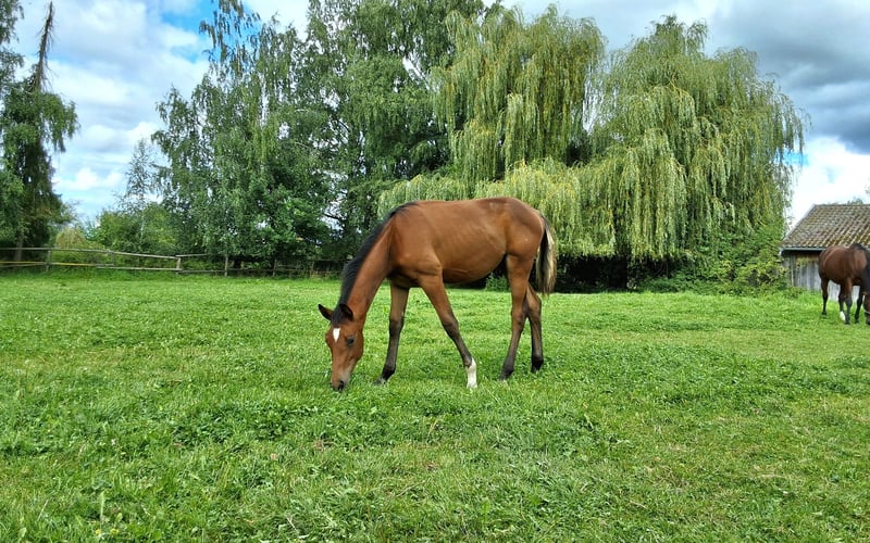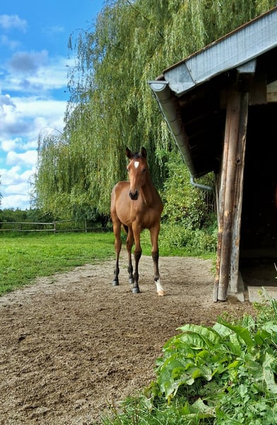Lovis Corinth- ein charmanter Hengst zeigt sich hier mit einer herausragender Bewertung und beeindruckenden Bewegungen. Stets im bergauf und ein harmonisches Gangbild in allen drei Gangarten verweisen auf die herrvorragende Abstammung. Mit 59 Punkten (8-7,5-8-9-8,5-gesamt: 8,5) wurde dieser Sohn des Cornut von der Kommission ins Fohlenbuch eingetragen. Die Abstammung ist aus dem zuverlässigen Mutterstamm der Loza. Zu diesem erfolgreichen Mutterstamm ist ein aktueller Artikel auf der Website des Zuchtbezirkes Bayern zu lesen. (https://bayern.trakehner-verband.de/bezirk-inside/familie-o10a2-liesken) Vater Cornut: https://www.schralling.de/erfolgspferde/cornut/ "Hengstbeschreibung (Lars Gehrmann, 2020): Cornut ist ein ganz sympathischer Leistungstyp mit herrlich offenem Gesicht, großem Auge und noch jugendlicher Ausstrahlung. Sein ungemein abgeklärtes Auftreten lässt auf ein stabiles Nervenkostüm schließen, das seinen Qualitäten am Sprung sowohl in der Freispringreihe wie auch unter dem Sattel durchaus entgegenkommt. Hier punktet er durch Vorsicht, Vermögen und Übersicht. Bei klarem Rechteck-Rahmen könnte er in der Oberlinie etwas pointierter sein, wobei er auf stabilem und korrektem Fundament steht. Unter den Grundgangarten sind der gelassene Schritt und die deutlich vom inneren Hinterbein getragene Bergauf-Galoppade besonders zu loben. Seine interessante Abstammung rundet das Gesamtbild positiv ab. " (Zitat Trakehnerverband) "Pedigreebeschreibung (2020): Aus dem Vermächtnis des Leistungshengstes Heops stammt dieser Springspezialist, dessen Pedigree auf der mütterlichen Seite ergänzt wird durch den vielseitigen Halbblüter Inster Graditz und den springbetonten Ignam, unter anderem Teilnehmer am Weltcup-Finale 1990. Der fallende Mutterstamm geht weiterhin zurück auf die Leistungsvererberin Czarnobrewa, die nicht weniger als sieben Nachkommen in Spring- und Vielseitigkeitsprüfungen bis zu Klasse S an den Start brachte, sowie deren Mutter Chrenowska, die selbst im Springparcours bis Klasse S erfolgreich war. " (Zitat Trakehnerverband) Wir wünschen einen Verkauf in fördernde Hände und freuen uns über eine bevorzugt telefonische Kontaktaufnahme .