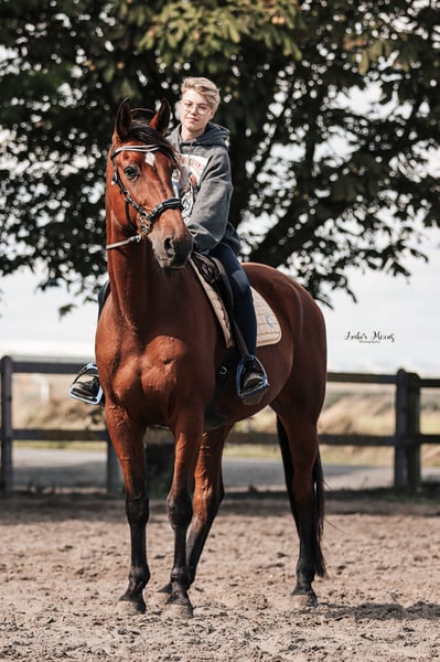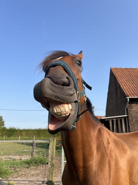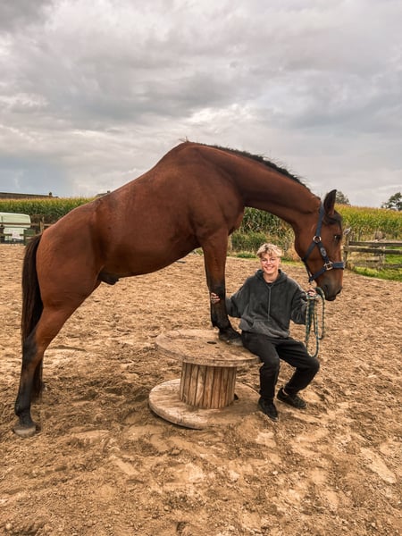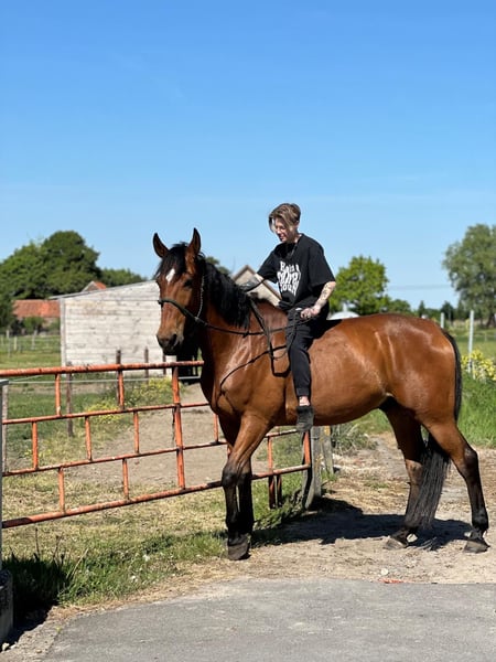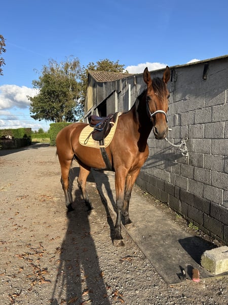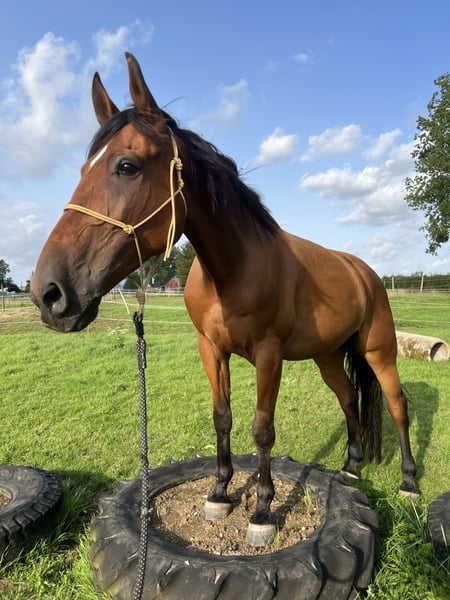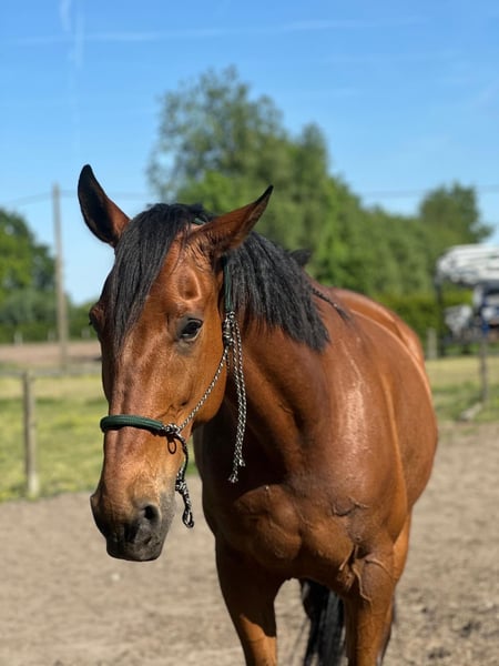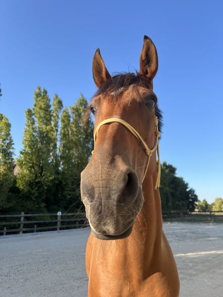 10-jarige Franse Draver ruin. Hij is circa 1.70m groot en een fijne verschijning. In de omgang is hij braaf en mensgericht. Hij heeft echter medische aandachtspunten: – Vastgestelde ataxie in lichte vorm – Kissing spines in lichte vorm Om deze reden is hij niet geschikt voor de sport of voor intensieve belasting. Hij kan mogelijk passend zijn voor iemand die op zoek is naar een paard voor licht recreatief gebruik, grondwerk, vrijheidsdressuur, wandelen aan de hand of onder het zadel, gezelschap of als weidemaatje. Nu is hij al bekend met een groot deel grondwerk en vrijheidsdressuur en dit doet hij ook het liefste. Hij is gewend aan dagelijks contact en gaat makkelijk mee in de omgang. Wij zoeken voor hem een eerlijk, rustig en blijvend huis, waar zijn welzijn voorop staat. 24/7 op stal staan is wegens de Kissing Spines uitgesloten. Nu staat hij in de zomer 24/7 buiten in kudde, en in de winter enkel ‘s nachts op stal. 📍 Klinisch verleden bekend en bespreekbaar 🏡 Alleen naar een 5-sterrenhuis 💬 Prijs en verdere informatie in overleg ‼️ Op vragen over enkel de prijs en handelaars wordt niet gereageerd!‼️