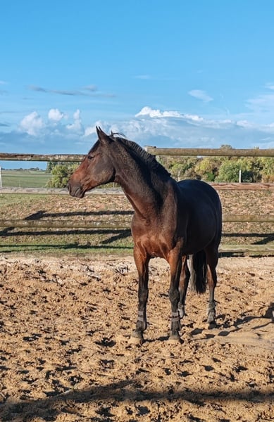 Due to family reasons, I need to part with my horse, Héracles du Kastel. Héracles is a French trotter born in 2017. Versatile, he will be the perfect companion for a leisure rider. Héracles enjoys going for rides, is comfortable in dressage, and can jump, although this is not his strongest discipline. He will suit a confident rider (level 5). If used only for leisure riding, he could also be suitable for a rider with slightly less experience. Héracles lives in a box at night and in a paddock with his peers during the day. He is barefoot, up-to-date on vaccinations and deworming. Héracles travels easily and is easy to handle. He is accustomed to other animals and children. He measures 1.60 m (16.0 hh). Available for viewing in Breteuil (60). For a serious family only.