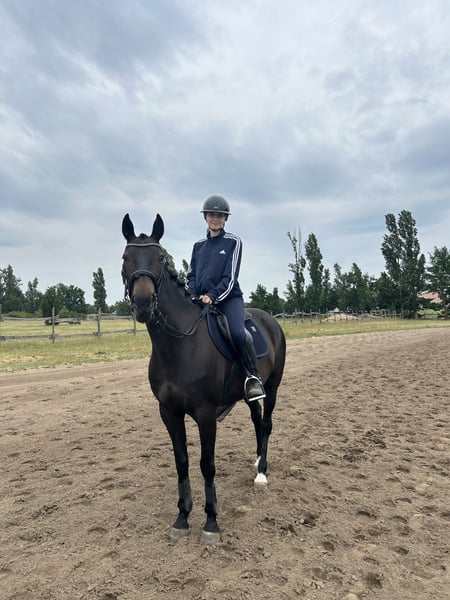 Hallo alle zusammen, Wir verkaufen unsere Traberstute Goldi. Sie ist 9 Jahre alt. Sie ist eine Seele von Pferd und wenn man sie einmal auf seiner Seite hat geht sie für einen durchs Feuer. Sie ist liebevoll und brav im Umgang und ist für jeden Quatsch zu haben, ob Bodenarbeit, ausreiten, Kleine cavalettis oder Einfach reiten in der Halle oder reitplatz. Sie wird schon geritten seit dem sie fünf ist geritten und ihr Galopp ist über die Jahre immer besser geworden das man ihr garnicht mehr anmerkt das sie ein Traber ist. Sie wurde im August 2025 am griffelbein operiert was sie aber super gemeistert hat. Momentan befindet sie sich im Aufbau Training( Sie trabt und galoppiert ). Sie hat außerdem hufrehe die sie aber ( außer das sie nicht länger als eine Stunde auf die Wiese und getreidefrei essen muss) überhaupt nicht ein. Wenn ihr ein Pferd wollt mit dem ihr alles machen könnt und Spaß haben wollt ist Goldi genau die richtige. Röntgen Bilder Vorhanden. Bei Interesse und/ oder Fragen gerne anschreiben