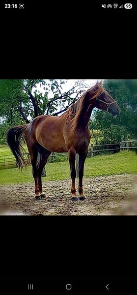 Hey du, ja du! Dich suche ich. Ich soll mich vorstellen? Natürlich mach ich das. Ich bin Puppa. Eigentlich hab ich einen voll langen Namen aber meine jetzigen Menschen sagen immer Puppa. Und mal ganz ehrlich gefällt mir der Name auch wirklich gut. Ich bin nämlich eine wunderschöne 10 jährige ca 1.74m große dunkelfuchs Traberstute. In meinem bisherigen Leben habe ich nie was schlechtes erleben müssen. Ich wurde immer liebevoll behandelt und habe ganz viele Dinge kennengelernt. Ich wollte damals unbedingt Rennen laufen und habe mich ganz doll angestrengt, da ich ja auch jeden zeigen wollte wie toll ich bin. Aber einmal im Training war ich total motiviert und hab mich so sehr konzentriert das ich mit meinem Bein gegen den sulky gestoßen bin. So toll wie ich bin habe ich mir nichts anmerken lassen aber meine Menschen haben trotzdem vorsichtshalber so einen angerufen der sich glaub ich Tierarzt nennt. Der hat dann festgestellt das ich ein Loch in der Obsehne habe. Bei einer nachfolgenden Untersuchung wurde dann noch festgestellt das mein fesselringband an dem Bein auch etwas dicker ist als es normal sein soll aber das merke ich überhaupt nicht. Da ich ja schon im Training gezeigt hatte das ich unbedingt laufen möchte haben meine Besitzer gesagt unsere Puppa darf ein Baby bekommen. Ich kann euch sagen das war eine schöne Zeit. Mein Sohn ist fast genau so schön wie ich , denn schöner wie ich ich geht ja nicht. Meine Menschen haben gesagt ich bin eine ganz tolle Mama. Aber leider ändern sich manchmal Zeiten und meine Menschen haben gesundheitlich wenig Zeit für mich. Sie haben mir gesagt so wenig Beschäftigung habe ich nicht verdient und wünschen sich für mich jemanden der mich genauso so liebt wie sie es tun und ganz viel zeit für mich hat um mich zu beschäftigen. Wie gesagt ich bin auch eine ganz tolle Mama. Vor ein paar Tagen haben sie so ein komisches Ding auf mich gelegt. Ich glaube sie haben Sattel dazu gesagt . Das war natürlich kein Problem für mich, selbst mit einem Reiter oben drauf bin ich voll cool geblieben. Ich bin ja schließlich die Puppa. Wenn du Lust hast mich kennenzulernen komm doch einfach in Gelsenkirchen vorbei aber bring mir bitte ein Bonbon mit , ich bin ja schließlich eine verwöhnte Puppa. Da ich bestechlich bin sollten 27🥕🥕reichen. Aber meine Menschen sagen immer es geht auch weniger wenn ich ein Zuhause bekomme wo ich für immer bleiben darf. Lieben Gruß eure Puppa