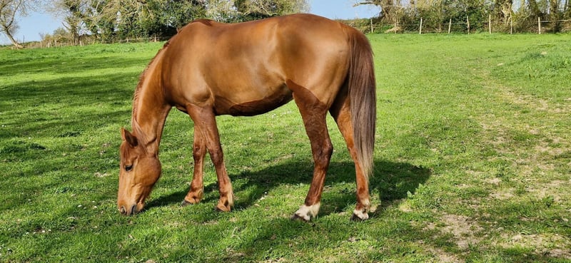 Zu verkaufen 10-jährige Traberrennstute 1,65 m Charmante und nicht dominante Stute, aber mit etwas Blut im Blut, daher nicht für Anfänger geeignet. Sanfter Umgang erfordert Erfahrung. Leben im Freien mit Unterstand. Hindernisarbeit vor drei Jahren eingestellt. Ausritte kein Problem (auch alleine möglich). Ausdauerprüfungen (20 und 30 km) in Ordnung. Gelände- und Dressurarbeit gut. Springen sollte noch verbessert werden. Schermaschine in Ordnung. Transport problemlos. Schmied in Ordnung. Impfungen aktuell. Letzte Osteopathiebehandlung im letzten Jahr. Letzter Zahnarztbesuch vor zwei Jahren. Sichtbar in der Creuse. €2.500 Transport möglich. Bei Interesse gerne PM für weitere Informationen.