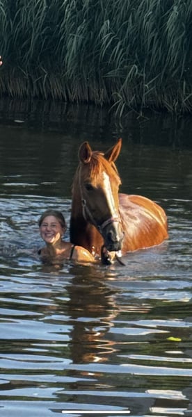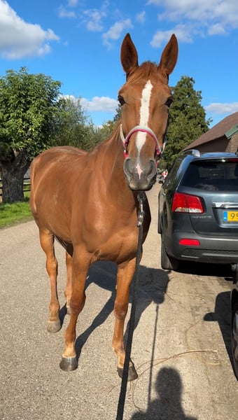 Liv is een prachtige, eerlijke merrie uit 2021 (Franse draver, 1.66m) met een gouden karakter en een super werkwillig hart. Ze is braaf op vreemd terrein, nuchter in het bos en pakt nieuw werk met veel plezier op. Liv is mee geweest naar dressuur, spring en crossles, en laat in alle disciplines zien dat ze snel leert. Ze is goed aan het been, kent de zijgangen en laat een leuke sprong zien. Springen en crossen doet ze met zichtbaar plezier. In de omgang is Liv een echte knuffel: lief op stal, makkelijk bij de hoefsmid, tandarts en op de trailer. Ze wil graag werken en heeft een vriendelijk karakter, maar is niet geschikt voor de echte beginner. Ze loopt van nature graag iets harder en zoekt nog wat meer balans, waardoor ze het best tot haar recht komt bij een ruiter met enige ervaring. Ik heb geen haast met de verkoop, Liv gaat alleen weg bij de juiste match. Video’s en meer informatie op aanvraag.