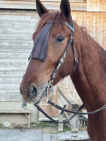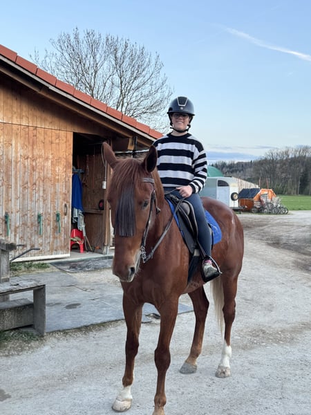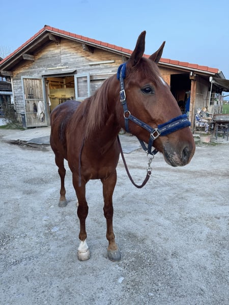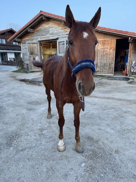 Lovefool ist ein wunderschöner sanfter Traber Wallach, mit dem man durch dick und dünn gehen kann. Er ist absolut unerschrocken im Gelände, ob Traktor, Hunde oder Fahrrad, Lovefool ist immer gelassen. Hat für einen Traber sehr schöne weiche Gänge, daher können wir ihn uns auch für Einsteiger sehr gut vorstellen. Ist auch sehr fein zum fahren. Unser liebevoller Lovefool ist auch im Umgang und in der Herde sehr sehr ruhig und liebevoll. Steht derzeit im Offenstall in einer gemischten Herde. Er kennt alle drei Grundgangarten, der Galopp muss aber noch gefördert werden. Er ist auf allen vieren beschlagen, regelmäßig Chiro und Zähne gemacht. Ist kerngesund, gechipt und geimpft. Im Auftrag zu verkaufen. Fürs Probereiten werden 30€ verlangt.