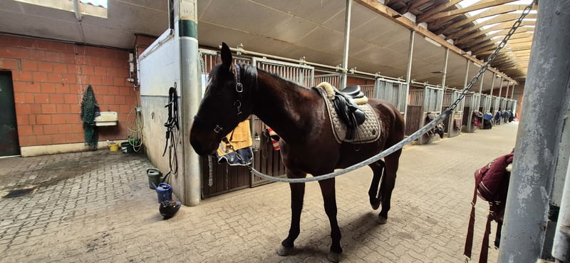 Ich verkaufe meinen 8 jährigen Traberwallach, weil ich ihm zeitlich nicht mehr gerecht werden kann und er es verdient hat weiter gefördert, gefordert und ausgebildet zu werden. Stockmass 165 cm, braun, weißer Fleck auf der Stirn. Er hat ein großes Herz, und hat man dieses ersteinmal erobert, macht er alles für dich. Um seine Qualitäten voll auszuschöpfen, benötigt er einen souveränen Menschen der ihm Ruhe und Sicherheit vermittelt. Dieser Text ist ehrlich formuliert, da ich mir für Ostwind ein für immer zuhause wünsche. Er ist seit 1,5 Jahren Freizeitpferd, gut ausgebildet an der Lounge, Doppellounge, Bodenarbeit, Stangenarbeit. Sowohl Halle und auch draußen. Er liebt Freispringen. Er ist wahnsinnig gelehrig, begreift schnell, setzt dieses sofort um und ruft es dann jederzeit auch wieder ab . Er geht gerne alleine, aber auch in der Gruppe ins Gelände. Nicht Herdengebunden. Auf ungewohnte Geräusche reagiert er manchmal ein bisschen empfindlich. Er lebt in einem Vollpensionsstall, tagsüber draußen, Nachts in der Box. Er steht in einer größeren Wallachgruppe, ist gut sozialisiert, spielt und rangelt auch mal mit seinen Kumpels. Ist aber ehr Rangniedrig. Gesund, gerade geimpft, Zähne gemacht, regelmäßig beim Hufschmied. Artig beim Verladen. Er sollte nur an einen erfahrenen Reiter gehen. Probereiten natürlich möglich.