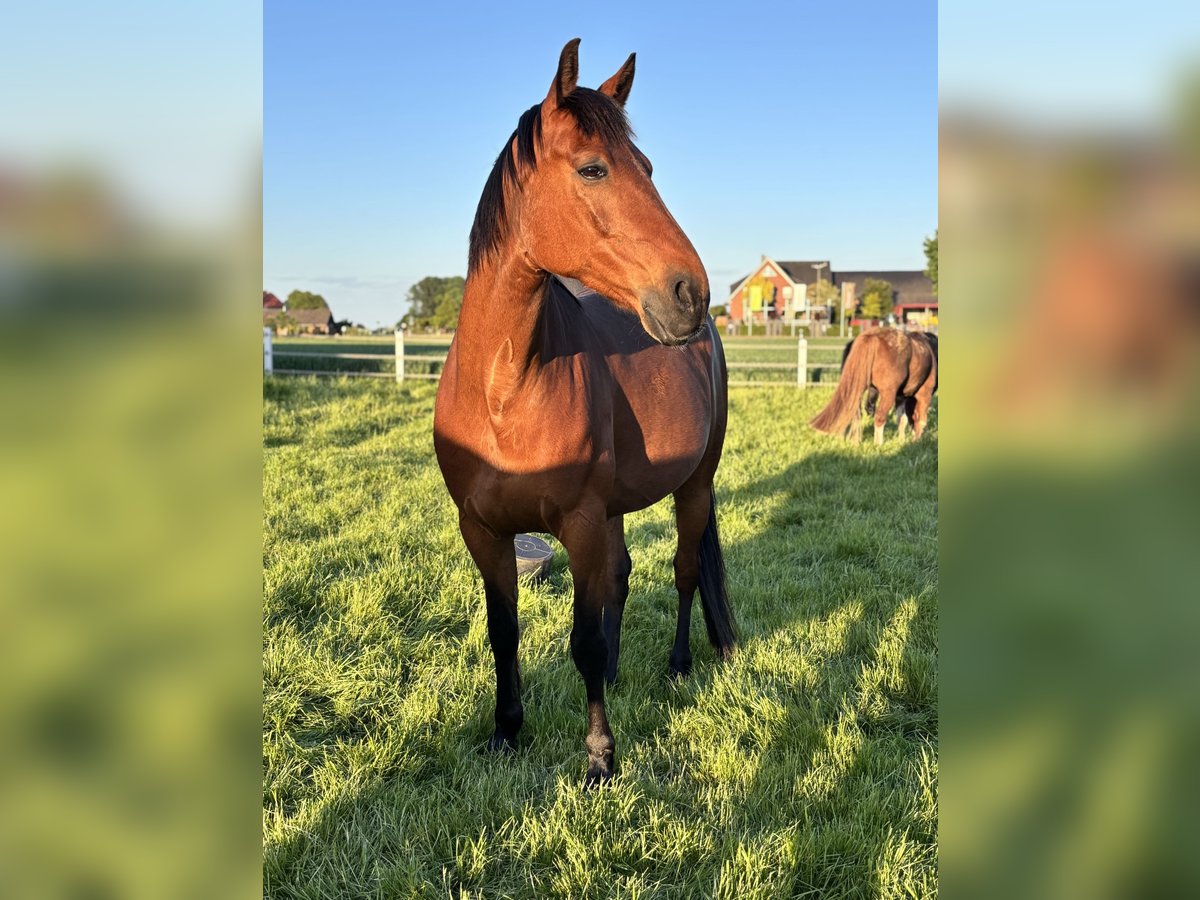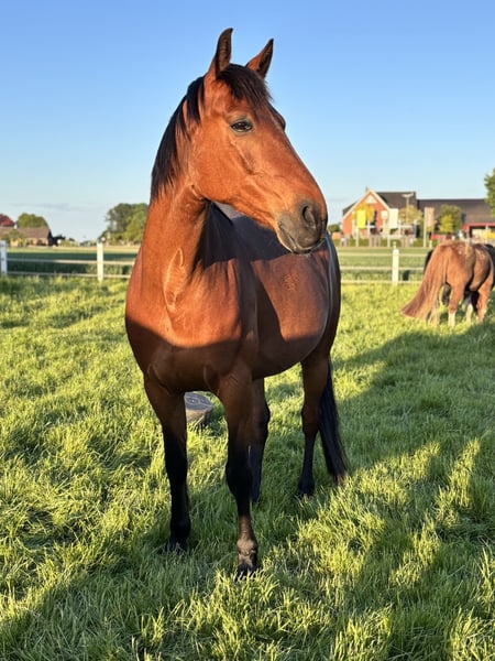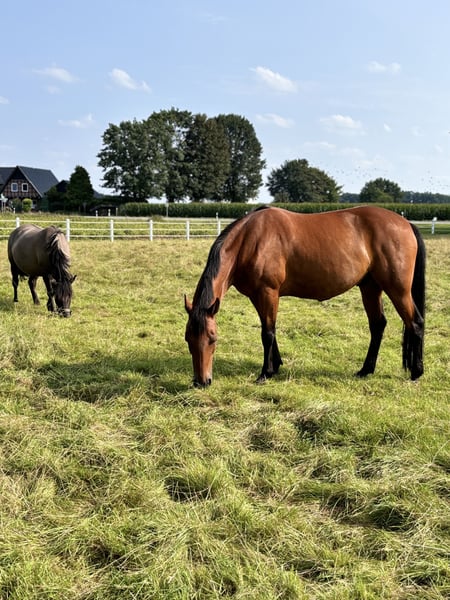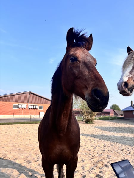 Hallo du! ich bin Enjo – ein 9-jähriger Traber-Wallach – 1,63m groß und ich suche meinen Herzensmenschen. Vielleicht ja genau dich? Auch wenn ich ein Traber bin, bin ich nie Trabrennen gegangen. Die Rennbahn ist also nichts für mich – und ehrlich gesagt habe ich daran auch gar kein Interesse. Viel lieber bin ich gemütlich unterwegs, genieße die Natur und erkunde als Freizeit- und Geländepferd die Welt. Genau dort fühle ich mich am wohlsten – im Wald, auf Feldwegen und bei entspannten Ausritten. Mit meinen 9 Jahren bin ich im besten Alter: kein Fohlen mehr, aber voller Energie für viele gemeinsame Jahre. Ich bin freundlich, ehrlich und wünsche mir einen Menschen, der Lust auf eine partnerschaftliche Zusammenarbeit hat. Ein kleines Extra bringe ich auch mit: Ich habe eine Hernie, die mich im Alltag nicht stört oder einschränkt. Allerdings bin ich dadurch kein Springpferd – hohe Hindernisse sind einfach nicht mein Ding. Dafür begleite ich dich zuverlässig im Freizeitbereich. Außerdem habe ich ein bisschen Magenprobleme. Deshalb vertrage ich nur Heu und keine Heulage. Für mich wäre es ideal, wenn ich 24/7 Zugang zu Heu hätte, damit mein Magen glücklich bleibt. Ein Offenstall wäre ein Traum für mich – alternativ wäre auch tagsüber Weidegang und abends eine Box möglich. Hauptsache, ich darf viel draußen sein und regelmäßig Heu knabbern. Im Galopp fällt es mir noch etwas schwer – da brauche ich einen geduldigen Menschen, der mir Zeit gibt und mich liebevoll unterstützt. Mit Ruhe und Vertrauen lerne ich aber gerne dazu und gebe mir große Mühe. Vorne trage ich Eisen, weil ich dort etwas fühlig bin. Damit komme ich aber gut zurecht und bin so angenehm zu reiten. Aktuell stehe ich in 49163 Bohmte und kann dort nach Absprache gerne kennengelernt werden. Ich freue mich, wenn du vorbeikommst und wir schauen, ob die Chemie zwischen uns stimmt. Und das Wichtigste zum Schluss: Platz vor Preis. Mein neues Zuhause soll wirklich passen – liebevolle Hände, Geduld und ein schönes Umfeld sind wichtiger als alles andere. Wenn du also ein treues Freizeitpferd suchst, das mit dir entspannt durchs Gelände zieht und mit dir gemeinsam wachsen möchte, dann könnte ich genau dein Enjo sein. Ich freue mich auf dich!