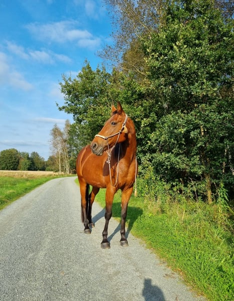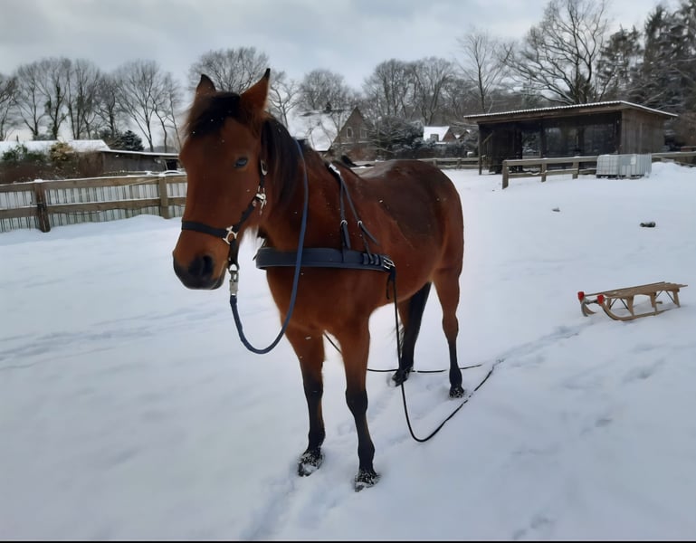Schweren Herzens muss ich mich aus persönlichen Gründen von meiner lieben Traber-Stute Kaja trennen. Kaja ist 21 Jahre alt, ca. 1,60 m groß und eine absolut liebenswerte, menschenbezogene Stute. Sie hat Rückenprobleme, weshalb sie die letzten Jahre nicht geritten wurde. Dennoch genießt sie es sehr, betüddelt zu werden. Wie auf den Bildern zu sehen, waren wir sogar mit ihr Schlitten fahren. Sie kennt Bodenarbeit, ist problemlos im Umgang, geht brav alleine spazieren und ist auch das Verladen im Anhänger gewohnt. Leider bringt das Leben manchmal Veränderungen mit sich, die diesen Schritt notwendig machen. Für sie wünsche ich mir ein liebevolles Zuhause, in dem sie etwas Bewegung vom Boden bekommt, was ihr sehr gut tut oder einen schönen Platz als Beistellpferd. Aktuell steht sie in Vollersode in einem Offenstall in einer kleinen Herde. Es besteht die Möglichkeit, dass sie dort stehen bleiben kann. Alles Weitere gerne persönlich.