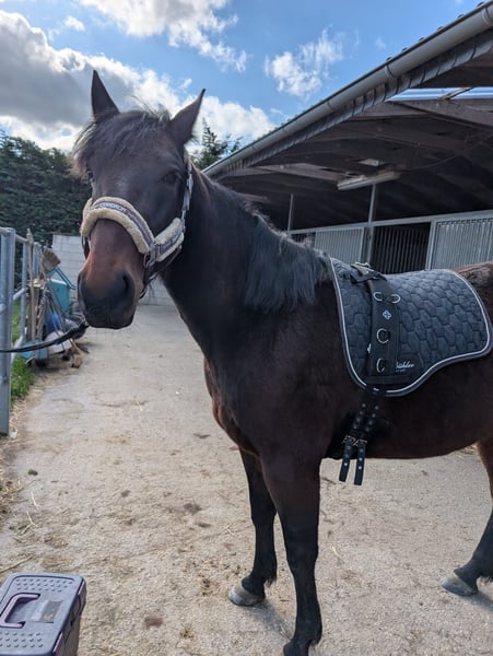 Schweren Herzens trennen wir uns von unserer lieben Joy, da ich unerwartet schwanger geworden bin und wir ihr bereits jetzt zeitlich kaum gerecht werden können. Joy wird diesen Monat 5 Jahre alt, hat ein Stockmaß von 155 cm und wiegt ca. 550 KG. Sie ist derzeit in einem Reitstall (täglich mehrstündiger Paddock- & Weidegang, über Nacht in eine Box) eingestellt. Sie wurde bereits angeritten und übt sich auch souverän in Bodenarbeit, u.a. Equikinetic, Longieren. Sie ist sehr liebevoll und umgänglich und genießt auch gerne den Kontakt zu anderen Pferden. Zubehör (Stricke, Trense, Halfter, Decke, Sattel) inklusive. Verkauf ausschließlich mittels Schutzvertrag.