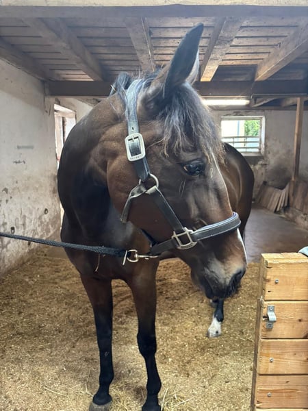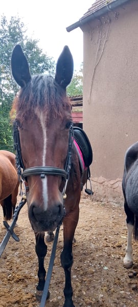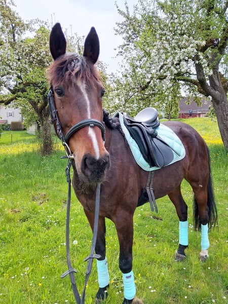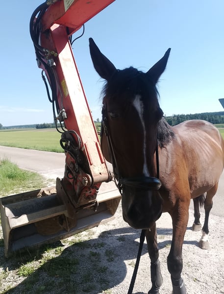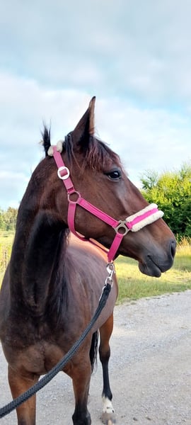 Verkaufe schweren Herzens meine Traberstute. Wegen Scheidung kann ich sie leider nicht behalten. 8 Jahre alt, 1,55cm groß. Habe sie im März 2024 gekauft. Eine Seele von Pferd. War anfangs sehr misstrauisch und ängstlich gegenüber Traktoren und anderer Verkehrsteilnehmer. Mittlerweile sehr entspannt unterwegs. Sehr aufmerksam und fleißig. Läuft an der Longe und im Gelände. Mit Kindern sehr bedacht. Meine 2 Tochter 7+4 hat sie gerne im Schritt durchs Gelände getragen. Sie lief eine Zeit lang auf der Rennbahn. Wurde dann, bevor ich sie gekauft habe, aus dem Sport genommen. Abstammung ist vorhanden. Aufgrund von Zeitmangel im Galopp nicht gefördert. Damit hat sie noch Schwierigkeiten. Wird als angeritten verkauft. Ausdrücklich nicht als Fahrpferd! Reines Freizeit-Reitpferd oder reitbarer Beisteller. Könnte sie mir gut auf Wanderritten vorstellen, dann allerdings mit Beschlag oder Hufschuhen. Steht derzeit im Offenstall mit einer Ponystute, kennt aber auch Boxenhaltung. Bei weiteren Fragen gerne schreiben. Gerne anschreiben und nicht nur merken. Platz vor Preis