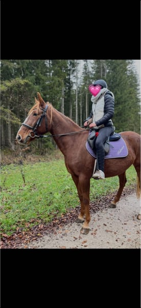 Unsere 9-jährige Traber-Stute Makamae ist ein ganz besonderes Pferd, das nun ein neues, liebevolles Zuhause sucht. Makamae ist eine treue Seele, die im Gelände absolut zuverlässig ist. Ob alleine oder in der Gruppe - sie geht sicher und gelassen ihren Weg. Auf dem Platz ist sie eher gemütlich unterwegs, kennt aber alle drei Grundgangarten und macht brav mit. Besonders bezaubernd ist ihr sanftes und liebevolles Wesen. Sie liebt Kinder, lässt sich geduldig putzen, streicheln und genießt jede Aufmerksamkeit. Mit ihrem ruhigen Charakter ist sie die perfekte Begleiterin für entspannte Ausritte, gemütliche Spaziergänge oder auch für Familien, die ein liebes Freizeitpferd suchen. • Ihre Starken: • Verlässliche Partnerin im Gelände • Kinderlieb & menschenbezogen • Kennt Schritt, Trab & Galopp • Bringt Ruhe und Gelassenheit mit Außerdem gebe ich noch einiges an Zubehör mit: Sattel, Zaumzeug, Halfter und vieles mehr. So kann Makamae direkt in ihrem neuen Zuhause ankommen. Makamae ist kein Sportpferd - sie sucht Menschen, die ihre liebevolle Art schätzen und Freude an gemeinsamen Momenten haben.
