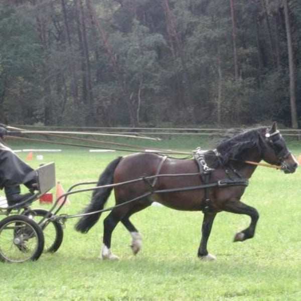 Chit-Chat is a very typical, well-behaved stallion with very good gait. Moved to Wales, he was already able to win shows there as a one- and two-year-old stallion. He came to our stud farm at the age of two, was licensed for North Rhine-Westphalia and is supposed to be available to mares who carry the blood of our main stallion Crimond Brenin. He is performance tested, ridden and driven. He has English deck license. Descent: http://www.allbreedpedigree.com/glebedale chit-chat ---- We prefer personal contact by phone ( 49 (0) 2150 / 700 505 and 49 (0) 1522 955 0 211) and therefore do not answer e-mails or text messages.