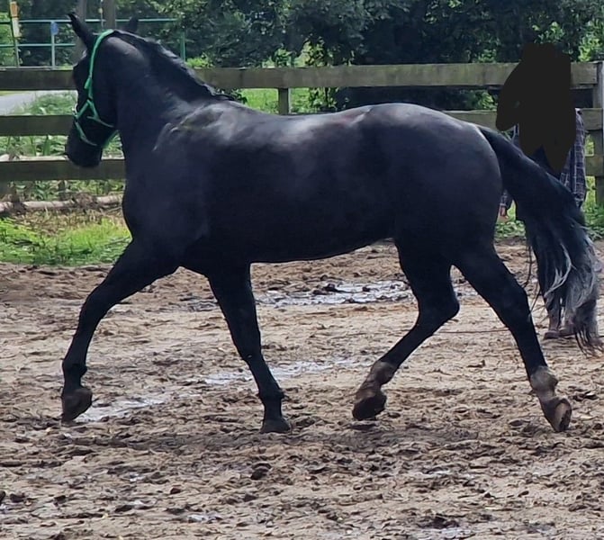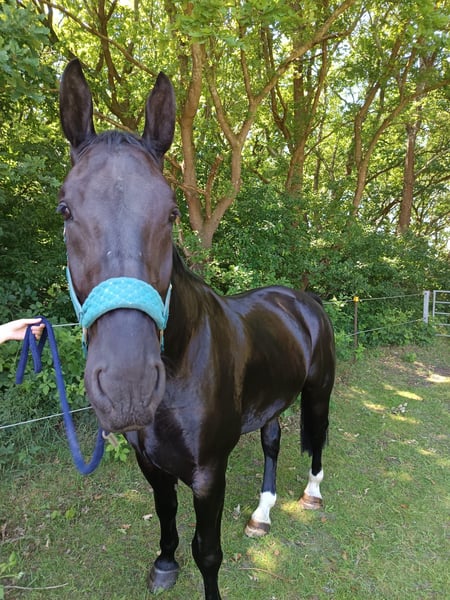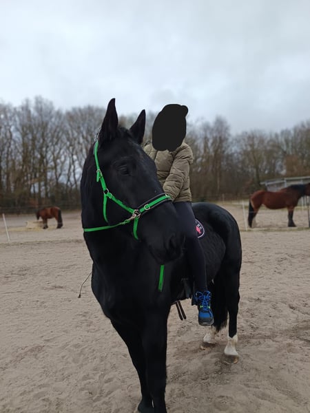 Wir verkaufen unseren 5 jährigen Wallach. Wir haben ihn seit er 1,5 Jahre alt ist. Größe, nur geschätzt, 1,72 m. Wir haben im März angefangen ihn zu reiten. Schritt auf dem Platz ohne Longe und Trab bot er auch schon an. Er wurde bei uns Gebisslos bewegt. Leider steht er seit Mai, wegen Schwangerschaft, nur auf der Weide. Dafür ist er einfach zu schade und das möchten wir ihm nicht weiter antun. Er zeigte sich unterm Sattel stets artig. Mein Mann ist ihn ohne führen oder ähnliches auf dem Platz geritten und das mit wenig Reitererfahrung. Er steht gut beim Schmied. Geht Barfuß. Er hat ein dominantes Wesen! Er ist sehr ranghoch. Am besten wäre es wenn er mit einem Wallach oder einer Stute zusammen kommt die ebenfalls eher Ranghoch sind. Aktuell steht er allein auf der Weide mit Kontakt über den Zaun, da es mit einer Zusammenführung leider nicht geklappt hat. Er steht bei uns im Sommer 24/7 auf der Weide und im Winter Nachts in der Box. Er hat leider Sommerekzem. Er trägt durchgehend Decke und Maske. Bei Fragen bitte per WhatsApp melden.