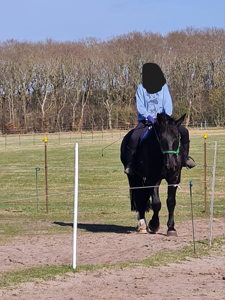 Wij verkopen onze 5-jarige ruin. We hebben hem sinds hij 1,5 jaar oud is. Grootte, alleen geschat, 1,72 m. We zijn in maart begonnen met hem te rijden. Hij kan al stap op de manege zonder longe en biedt ook al draf aan. Hij is bij ons bitloos gereden. Helaas staat hij sinds mei, vanwege zwangerschap, alleen op de wei. Hij is gewoon te mooi om dat te laten gebeuren en dat willen we hem niet langer aandoen. Onder het zadel gedroeg hij zich altijd braaf. Mijn man heeft hem zonder te leiden of iets dergelijks op de manege gereden, en dat met weinig ruiterervaring. Hij staat goed bij de smid. Hij loopt op blote voeten. Hij heeft een dominant karakter! Hij is zeer ranghoog. Het beste zou zijn als hij samenkomt met een ruin of merrie die ook eerder ranghoog is. Momenteel staat hij alleen op de wei met contact via het hek, omdat de samenvoeging helaas niet gelukt is. In de zomer staat hij bij ons 24/7 op de wei en in de winter 's nachts in de stal. Hij heeft helaas zomereczeem. Hij draagt continu een deken en een masker. Bij vragen graag per WhatsApp contact opnemen.