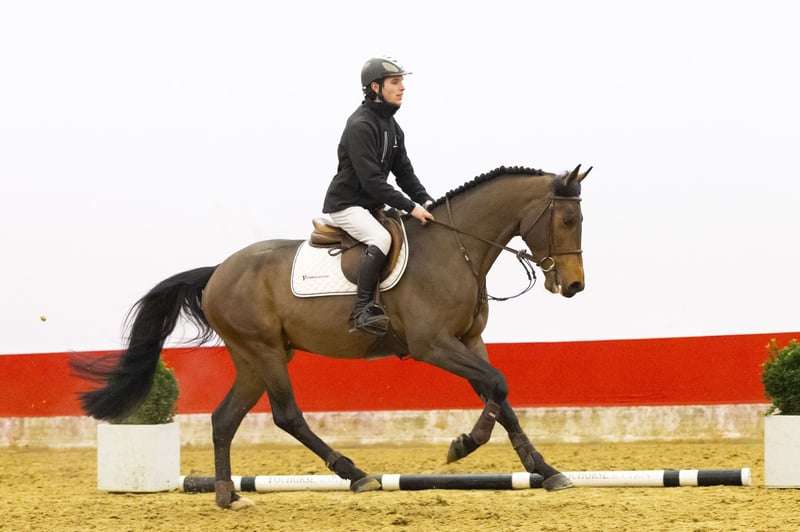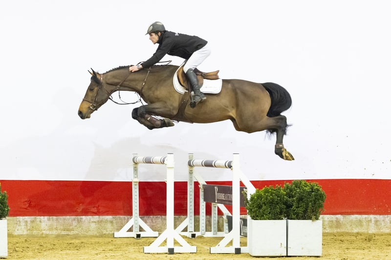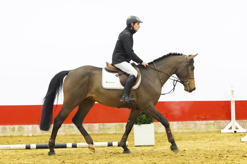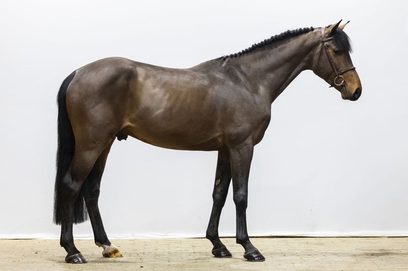 Prêt pour un cours d'entraînement. Ce magnifique hongre bai foncé est un cheval de sport moderne, compact avec de longues jambes, construit en montée avec une bonne ligne du dessus. Il saute de manière très efficace et reproduit la même qualité à chaque obstacle. Sa technique avec les postérieurs est très solide et il travaille toujours correctement depuis l’arrière. Il a un caractère calme, est bien élevé et adapté aux amateurs. Il donne toujours le meilleur de lui-même en saut et procure au cavalier une sensation de confiance et de confort. Facile à monter et déjà agréable au contact. Un cheval qui offre confort et confiance.
