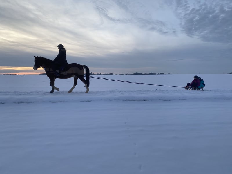 We are selling our incredibly reliable and calm all-rounder with a heavy heart. Both of my daughters learned to ride on him – he can be safely ridden by a five-year-old child as well as an adult rider. He is 100% trail safe and completely bombproof – no bucking, no rearing, and no bad habits. Through his gentle training with our children, he has experienced a lot and remains consistently calm and attentive. He can be ridden with a halter, with or without a saddle, with or without a bit, and is also perfect for lunging or groundwork. He has been regularly worked from the ground and responds delicately to aids. Thanks to numerous trail holidays, he is familiar with terrain, roads, water, traffic, and various environments – he navigates both alone and in a group with absolute confidence. Even two children on his back are no problem for him :-) He has good stamina, is enduring, and was driven before our time. A true gem, rarely found – calm, reliable, and with a big heart. He is barefoot and free of eczema, currently in an active stable. He also knows a box stall. Loads easily and is farrier-friendly. No illnesses or medications in the past five years. Regularly vaccinated and dewormed. A genuine family horse with heart and intelligence, always eager to please his humans. We are looking for a loving home where he will continue to be appreciated as he deserves. To avoid unnecessary travel and to give each interested person enough time, we charge a protection fee of €30, which will be credited towards the purchase price.