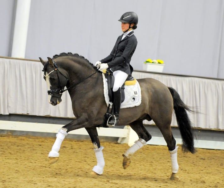 Wunderschöner Reitponyhengst in Sonderlackierung. Rappfalbe mit herrlichem Typ, Auge und Ausstrahlung. Seine hervorragenden Grundgangarten und seine Arbeitseinstellung begeistern jeden Tag aufs neue. Sein Vater Valido gehört laut FN seit Jahren zu den Top Vererbern, zahlreiche gekörte Hengste und Staatsprämienstuten, sowie hocherfolgreiche Sportponys bis Dressur Kl. S gehen auf sein Konto. Seine Mutter Verb.Pr.St.Dolce Vita ist bereits Hengstmutter und kommt ebenfalls aus einem Stamm, aus dem zahlreiche Sportponys hervorgehen. Ein weiterer Edelstein im hinteren Pedigree ist Merafic ox. Er vereinte Härte, Adel und Leistungsbereitschaft. Valido's Grey Star G: Ein Hengst mit dem gewissen Etwas! Erfolge 2017: Siege und Platzierungen in Reitpferdeprüfungen und Dressurpferde A 2018: Erfolgreichste 5jährige Westfälische Reitpony laut FN Statistik. Zahlreiche Siege in Dressurpferde A und L sowie A Dressuren Qualifikation Bundeschampionat Dressurpony A sowie Dressurpony L gewonnen HLP über Sporterfolge absolviert Wie alle unserer Hengste, deckt auch Valido's Grey Star G im Natursprung mit Lebendfohlengarantie zu züchterfreundlichen Konditionen! weitere Infos unter www.hengststation-gernholt.de