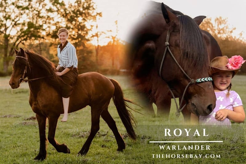 Royal✨ is a big, beautiful bay with those big brown kind eyes. He’s a Warlander aka (Friesian/ Andalusian) He’s standing a little over 15.2 and is one of the smartest horses. He has a solid build and could easily carry a heavier rider. He’s very friendly, easy to catch. Rides out alone or with a group, he’s been on quit a few group trail rides down at the buffalo national river. Makes one fine trail horse and would often go down or up things other horses wouldn’t. Stands to saddle, bridle. Good for the farrier, picks up all feet well. Loads and backs out. Good with water, tarps. He’s not spooky at ALL. You can climb all over him, slide off his rump, go underneath him. He’ll ride right through town with no issues, he crosses bridges he’s been around for wheelers, Dirtbike, I’ve shot guns off of him. He’s been around cows, pigs, lots of dogs, goats, chickens etc. He sides passes both ways, backs, moves his front quarters, hind quarter. I haven’t worked on his gates much until the last couple weeks so he’s still figuring that out better and he is a very fast learner. He comes over to you on anything to get on, just lift your arm and kiss and he slides right over. He rides bar back or double. He’s often giving children rides either for my niece’s and nephew or for children down at the park. He doesn’t kick, buck, bolt, rear or bite. He’s pretty chill on the trail and easily hangs back with the quarter horses but can easily keep up with gated horses. He is just an overall fun horse for about anyone. He can have a little more go then whoa sometimes so I wouldn’t say he is a great horse for a child beginner. He has good ground manners and backs and scoots over from the ground. He does have a scare on his nose, I’m not sure how he got it, I did put stuff on it for a while and it did get a little better but is still visible He could pretty much excel in any direction, from jumping, to ranch work, play days, dressage, trail riding, or taught to pull. He was ridden in the Harrison parade in September and did fabulous. He will be very sad to see go for the whole family but as this being a hobby of riding and training I just can’t afford to keep him any longer, he has been very loved here and I truly just want the best for him, he has a big heart and deserves the best! For anyone that is interested I would love for them to come ride him, I’d be happy to take you out on the trails and try him out or in the arena. If you have any questions, give me a call I will have more videos posted before the Action ends