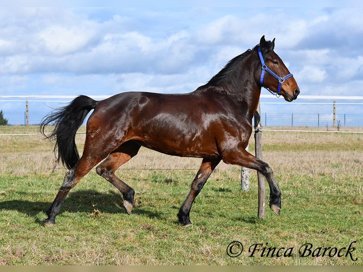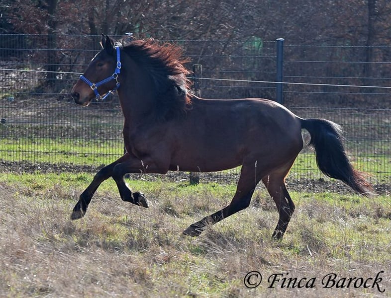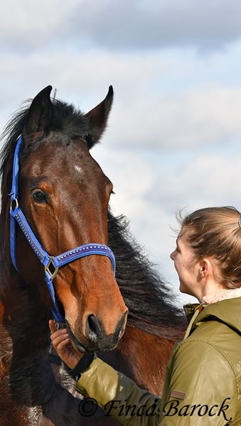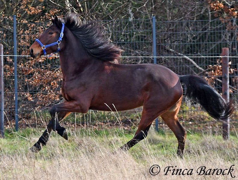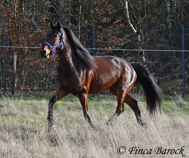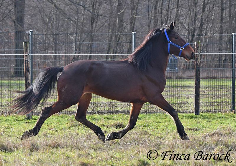 Rasse: Warlander Name: Señorita Geschlecht: Stute Stockmaß: 160 cm Alter: 14.01.2022 Farbe: Braun Preis: 6700 € Vater: o. P. Mutter: o. P. Señorita, ist eine zuckersüße Lady mit einem tollen, freundlichen Charakter. Sie steht noch voll in der Entwicklung und wird noch bisschen wachsen und auslegen. Die ersten Tage zeigte sich Señorita eher schüchtern und zurückhaltend. Innerhalb kürzester Zeit ist sie aber bereits sehr aufgetaut und liebt es Zeit mit ihren Menschen zu verbringen. Señorita ist in den GGA angeritten. Sie ist noch am Anfang und wird Stück für Stück bei uns weiter ausgebildet. Sie lernt schnell und ist sehr aufmerksam bei der Sache. Sie möchte Ihrem Reiter gefallen. Besonders ihr Galopp ist sehr sitzbequem und von Haus aus schön Bergauf. Señorita zeigt sich wenig umweltorientiert und auch bei ersten kleinen Ausritten erleben wir sie sehr entspannt. Sie kennt auch Herdenhaltung und stand mit ihrer Freundin Africana bis jetzt zusammen. Sie zeigt sich eher Rangniedrig als Ranghoch. Auch ist sie Kinder und Hunde gewöhnt. Mit Señorita bekommt man eine schöne Anpaarung aus zwei Rassen, welche bereits solide an en Reiter gewöhnt ist, aber man noch selber weiter Ausbilden kann. Natürlich kann Sie auch gerne bei uns weiter in Beritt bleiben. Kontakt: Finca Barock, Tel. 0173-696 31 81, 56291 Wiebelsheim