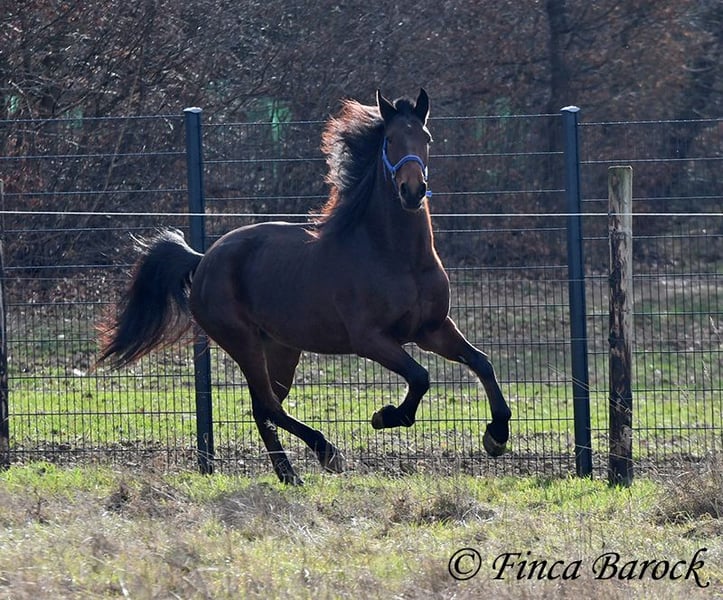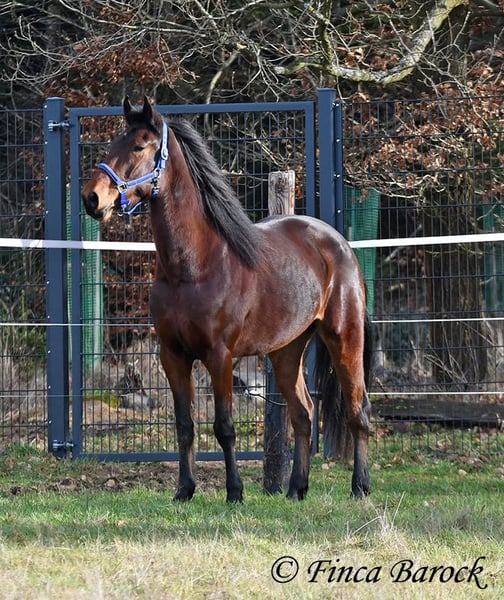Ras: Warlander Naam: Señorita Geslacht: Merrie Stockmaat: 1,60 m Geboortedatum: 14-01-2022 Kleur: Bruin Prijs: € 6.700 Vader: Onbekend Moeder: Onbekend Señorita is een ontzettend lieve dame met een geweldig, vriendelijk karakter. Ze staat nog volop in ontwikkeling en zal nog wat groeien en uitgroeien. In de eerste dagen was Señorita wat verlegen en terughoudend. Binnen korte tijd is ze echter al erg op haar gemak en geniet ze ervan om tijd met haar mensen door te brengen. Señorita is onder het zadel gereden in de GGA. Ze bevindt zich nog in het beginstadium en wordt bij ons stap voor stap verder opgeleid. Ze leert snel en is zeer oplettend. Ze wil haar ruiter graag behagen. Haar galop is bijzonder zitvriendelijk en van nature mooi bergop. Señorita toont zich weinig milieugevoelig en voelt zich ook bij de eerste kleine buitenritten zeer ontspannen. Ze is bekend met groepshouding en heeft tot nu toe samen gestaan met haar vriendin Africana. Ze toont zich eerder ondergeschikt in de rangorde dan dominant. Daarnaast is ze gewend aan kinderen en honden. Met Señorita krijgt u een mooie combinatie van twee rassen die al goed aan de ruiter gewend is, maar nog verder opgeleid kan worden. Natuurlijk is ze ook graag bij ons in verdere training te houden. Contact: Finca Barock, Tel. 0173-696 31 81, 56291 Wiebelsheim
