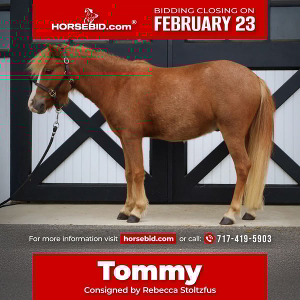 💎 𝐓𝐇𝐄 𝓓𝓲𝓪𝓶𝓸𝓷𝓭 𝐒𝐇𝐎𝐖𝐂𝐀𝐒𝐄 💎 Happening now thru MONDAY | FEBRUARY 23rd - Available EXCLUSIVELY on HorseBid's website! For more details and to register visit: www.Horsebid.com CONSIGNOR CONTACT: Rebecca Stoltzfus 717-419-5903 LOCATION: New Holland, PA BREED: Welsh pony cross REGISTERED: No REGISTERED NAME: Tommy COLOR: Sorrel HEIGHT: 11.2 AGE: 4 GENDER: Gelding 🌟 Tommy 🌟 Handsome 4 year old welsh pony x gelding, 11.2h and growing. Tommy has lived on our farm his entire life, and has been a joy to work with as he continues to mature. All of his training has been done by our family, and he has come along really nicely. He has a funny comedian-style personality that is common to many equines his size and is always the star of the show. He is special to each of us and there will be a few tears when he leaves. Tommy is started both in cart and under saddle and has solid basics in both. He has will pull whatever he is hitched to, including a sled! In the cart, Tommy will walk, trot, and canter with crisp transitions. He loves adventure and going new places, and would do really well in any driving discipline. Under saddle, Tommy does well with beginners on the leadline or lunge. If ridden by a slightly more experienced, confident, young rider, he has three solid gaits with good transitions, and will pop over small cross rails and logs. He absolutely loves trail riding, and will go alone or in a group. He is polite on the ground and stands to be groomed, tacked, washed, etc. He was used lightly in our small lesson program last year and although he was a gentleman, he did not enjoy the variety of riders- he does best with his own family. No vices or health issues, utd on coggins and basic vaccines. If you think Tommy might be a good fit for your family, I would love to discuss any questions or concerns! Feel free to message me via 717.419.5903. Thank you,