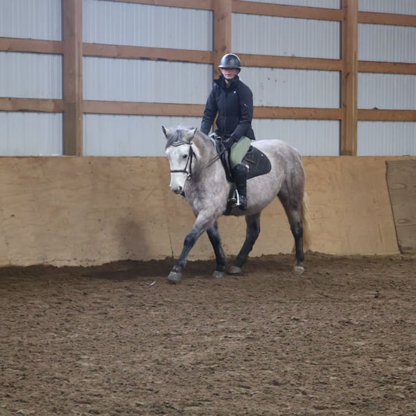 ♦️𝐍𝐄𝐖 𝐘𝐄𝐀𝐑'𝐒 𝑬𝒙𝒕𝒓𝒂𝒗𝒂𝒈𝒂𝒏𝒛𝒂♦️ Happening now thru MONDAY | JANUARY 12th - Available EXCLUSIVELY on HorseBid's website! For more details and to register visit: www.Horsebid.com CONSIGNOR CONTACT: Blackstone Stables 248-390-6831 LOCATION: Howell, MI BREED: Welsh Quarter Cross REGISTERED: No REGISTERED NAME: Pixie COLOR: Dapple Grey HEIGHT: 14 AGE: 5 GENDER: Mare We would like to introduce Pixie! This adorable dappled grey mare stands 14hh at 5 yo, with a big body. She is a Welsh Quarter X. Pixie has beautiful conformation and a mind to match. She is an elegant mover and is very light on her feet. Pixie is a total doll on the ground and plays well with others in turn out. Pixie walk trot and canters with ease, she’s knows her leads, will do flying changes when asked and her breaks are good. She has seen the trails, woods, water and wildlife. She’s coursing around at 2 ft 6 with plenty of scope to go higher. Pixie is quiet enough to tote around a beginner as well. She jumps in beautiful form! Pixie has been showing over fences and is one who can steep into a new environment with out batting an eye. She is excellent with chaos, crowds and being in a new environment. She loves the kiddos and is a very forgiving type of ride. She has easy changes that will be auto in no time! Pixie has participated in Halloween costume parades and has carried the flag. Pixie has been over bridges tarps, pool noodles and bridges with total ease. She is currently working in an English lesson program and she’s a favorite among the kids. Give us a call to meet her. Pixie lives in Howell, MI 48855 please give me a call or text to meet her 248-390-6831!
