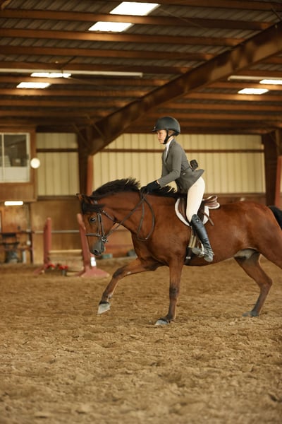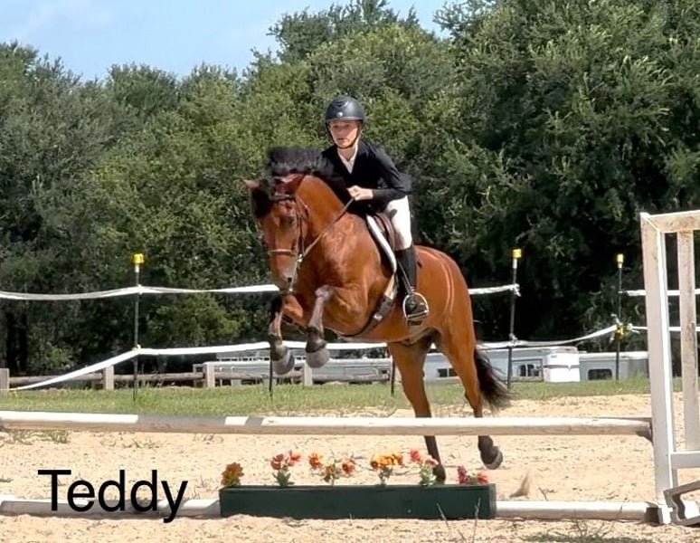 ♦️ 𝗔𝗠𝗘𝗥𝗜𝗖𝗔𝗡 𝗙𝗮𝗹𝗹 𝗖𝗹𝗮𝘀𝘀𝗶𝗰 ♦️ Trwa od teraz do poniedziałku, 20 października – dostępny WYŁĄCZNIE na stronie HorseBid! Więcej szczegółów i rejestracja na stronie: www.Horsebid.com KONTAKT DO KONIUDENTA: Ponies & Ponytails, tel. 727-741-0559 LOKALIZACJA: Cleburne, Teksas RASA: Welsh x Warmblood REJESTRACJA: Nie KOLOR: Kasztanowaty WZROST: 13,2 hh (ok. 135 cm) WIEK: 8 lat PŁEĆ: Wałach Jeśli szukasz najbardziej eleganckiego, wszechstronnego konia na kucyka, to jest właśnie on! Teddy to 8-letni wałach kasztanowaty, mieszaniec Welsh i Warmblood o wysokości 13,2 hh. DOŚWIADCZENIE W JĘZYKU ANGIELSKIM: Ten koń to sprawdzony i wszechstronny all-rounder! Z powodzeniem startował w konkursach hunter, jumper, equitation oraz cross country! Wskazujesz kierunek, a on składa te urocze, małe nogi i skacze z najlepszym stylem za każdym razem! Bez zbędnej głupkowatości! Bez przygotowań! Ten koń kocha swoją pracę! Teddy jest także bardzo konkurencyjny na płaszczyźnie płaskiej! Ma fenomenalny ruch! Zobacz jego filmy! Najpłynniejszy, delikatny kłus i niesamowity galop! Tak niezwykle gładki, że sprawia, iż klasy equitation to pestka! Za każdym razem trafia w swoje stępy, a jego przejścia na zmianę stępa są prawie gotowe! Ma bardzo łatwe przejścia w górę i w dół. Dobrze słucha głosu i reaguje na siedzenie i łydki. To koń, który poprowadzi dzieci na wyższy poziom. Jest spokojny i wystarczająco łatwy do pokazów na przeszkodach, a jednocześnie utalentowany, by konkurować na poziomie 2’3”–2’6”. Już odniósł sukcesy w klasach 2’3” i szkolił się na kursach w domu do 2’9”, z możliwością dalszego rozwoju! DOŚWIADCZENIE W JĘZYKU POLSKIM: Jeśli nie interesuje Cię jazda angielska, Teddy chętnie spróbuje swoich sił w westernowych konkurencjach! Z radością weźmie udział w playdays, biegach na beczkach i slalomach. Jest bardzo łatwy w manewrowaniu i pełen szacunku wobec sygnałów jeźdźca. Potrafi przyspieszyć na żądanie, a następnie spokojnie odłożyć głowę i iść cicho. Może jeździć cały dzień po szlakach, gdziekolwiek go skierujesz! Teddy może jechać na czele, z tyłu lub po środku grupy. Nie boi się zwierząt dzikich, ruchu ulicznego, psów ani kóz. Wspina się na strome wzgórza jak kozica i uwielbia zabawę w wodzie! Ma przyjemny, spokojny chód, kłus, galop i łatwy, delikatny rein na szyję. CHARAKTER: Teddy pasuje do niemal każdego programu! Od szkółek po pokazy. Ma wspaniały charakter i najbardziej przyjazną osobowość, jaką można sobie wyobrazić! Teddy to koń, którego nie znajdziesz codziennie. Od jego szkolenia i doświadczenia, po jego radosną, ulubioną osobowość w stajni. Zawsze wita Cię przy bramie i uśmiecha się na ciasteczka! OPIEKA: Teddy jest bardzo łatwy w utrzymaniu. Je regularnie karmione sianem alfalfa i pół miarki podstawowego granulatu dwa razy dziennie. Wszystko jest na bieżąco. Obecnie ma podstawowe buty z przodu dla wsparcia podczas skoków, ale może być też bezkopytny. ZAŁADUNEK: Teddy łatwo się załadowuje i rozładowuje. Dobrze jeździ na pace i spokojnie stoi przyczepiony do liny. Wypuszczanie na padok: Teddy może wychodzić sam lub w grupie. Był na wybiegu z klaczami i wałachami bez problemów. Zachowanie na ziemi: Teddy jest bardzo spokojny na ziemi. Dobrze stoi do mycia, czyszczenia, uderzania, siodłania i jest łatwy do uzbrajania. Możesz go przywiązać pojedynczo lub na krzyż. Nie boi się psów ani kóz biegających wokół. Złe nawyki: Teddy nie ma żadnych złych nawyków ani nałogów. Nie kopie, nie rzuca się, nie gryzie, nie gryzie, nie kopie. Umeblowanie: Teddy je w każdym rodzaju uprzęży, od halteru i liny, przez miękki snaffle, po wolny, skręcany snaffle. Bardzo łatwy i nie wymagający.