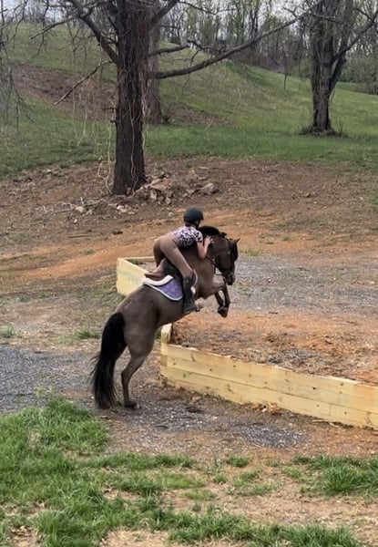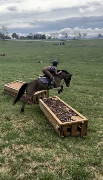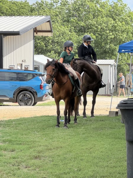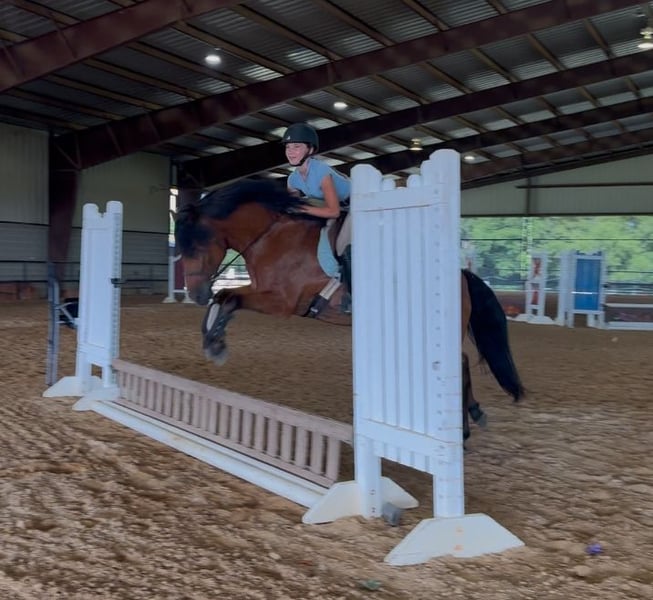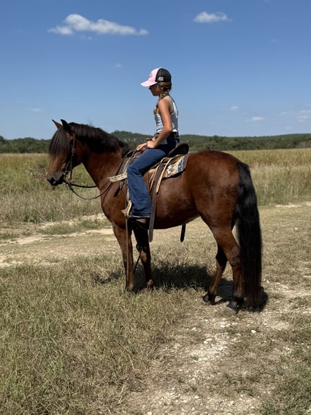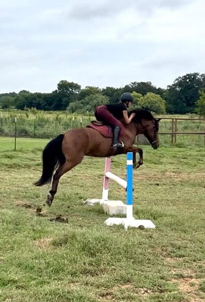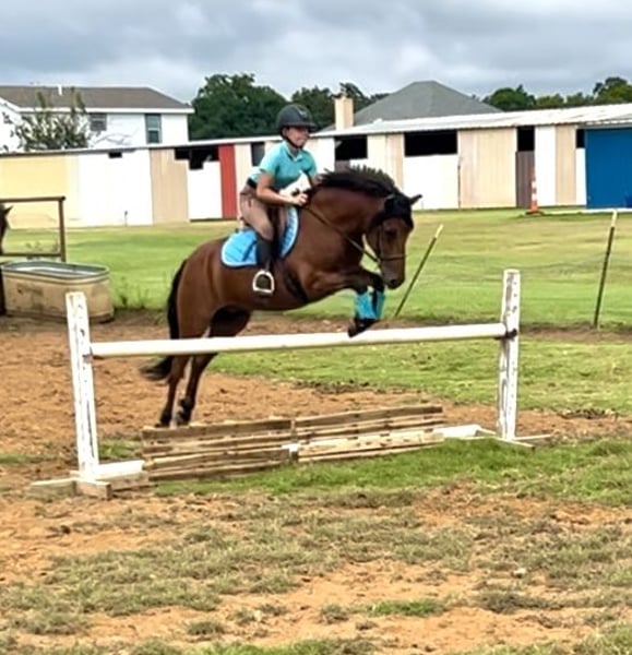 ♦️ 𝐭𝐡𝐞 𝐀𝐌𝐄𝐑𝐈𝐂𝐀𝐍 𝓕𝓪𝓵𝓵 𝓒𝓵𝓪𝓼𝓼𝓲𝓬 ♦️ Happening now thru MONDAY | OCTOBER 20th - Available EXCLUSIVELY on HorseBid's website! For more details and to register visit: www.Horsebid.com CONSIGNOR CONTACT: Ponies & Ponytails 727-741-0559 LOCATION: Cleburne, TX BREED: Welsh x Warmblood REGISTERED: No COLOR: Bay HEIGHT: 13.2 AGE: 8 GENDER: Gelding If you want the fanciest true all around pony.. this is your guy!! Teddy is a 8yr old 13.2h bay welsh x warmblood cross gelding. ENGLISH EXPERIENCE: This guy is a tried and true all arounder!! He’s been successfully shown in the hunters, jumpers, equitation and cross country!! You point and he tucks those little legs as cute as can be and gives you the best little jump he’s got every time!! No silliness!! No prep required!! This pony loves his job!! Teddy is also very competitive on the flat!! He’s got phenomenal movement!! Just watch his videos!! The flattest little trot and that canter is amazing!! So incredibly smooth he makes the equitation classes a walk in the park!! He catches his leads every time and he’s close to being finished on his lead changes!! He’s got very easy transitions up and down. Listens well to voice and responds well to your seat and leg. This is the pony that will take the kiddos to the next level. He’s quiet and easy enough to show in the cross rails yet talented enough to be competitive in the 2’3-2’6”. He’s been successfully shown already in the 2’3” and schooled courses at home up to 2’9” with more room to move up! WESTERN EXPERIENCE: If English isn’t your thing.. Teddy is happy to do the western events! He will gladly go to the playdays and do the barrels and poles. He’s very easy to maneuver and very respectful of his riders cues. You can ask him for all the speed then turn him right off and he will drop his head and walk quietly. He will go trail riding all day long and go anywhere you point him! Teddy will ride in the front, back or middle. Doesn’t mind wildlife, traffic, dogs or goats. He will go up steep hills like a mountain goat and he lovesss to play in the water!! He’s got a nice easy walk, jog, lope and a nice easy little neck rein! DISPOSITION: Teddy should suit just about any program! From the lesson barns to the show barns. He’s got a wonderful disposition and the coolest in your pocket personality!! Teddy is the kind of pony you don’t find everyday. From his training and experience to his bubbly barn favorite personality. He meets you at the gate every time and smiles for cookies! UPKEEP: Teddy is a very easy keeper. He eats alfalfa hay and a 1/2 scoop of a basic pelleted grain twice a day. UTD on all. Currently in a basic front shoe for jumping support. He has been and can easily go barefoot. LOADING: Teddy loads and unloads very easily. He hauls great and stands quietly tied to the trailer. TURNOUT: Teddy can go out alone or in a group setting. He’s been out with mares and geldings without drama. GROUND MANNERS: Teddy is very quiet on the ground. He stands well for washing, grooming, farrier, saddling and he’s easy to bridle. You can single tie or cross tie Teddy. He’s quiet with dogs and goats running around him as well. BAD HABITS/VICES: Teddy has NO bad habits or vices. No buck, rear, bolt, bite or kick. TACK: Teddy rides in anything from a halter and lead rope to a smooth snaffle to a slow twist snaffle. Super easy. Not fussy.