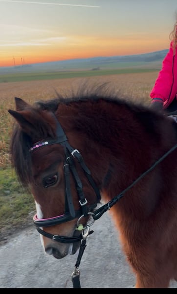 ⭐️ We are offering our wonderful Welsh A mare, Prinzessin, to a caring new home ⭐️ Our Prinzessin, in the beautiful bay color, is in excellent health with no known illnesses. Born in 2016, she measures 123 cm at the withers. She walks calmly on the longe and is led comfortably in the field. She has been ground-driven and, with further training, could also be suitable for cart work. She has a good go, but remains manageable. She responds very well to voice commands, even while riding. She loves being groomed and cuddled. Currently, she is being ridden on the longe by my 10-year-old daughter. If interested or for more information, please feel free to contact us.