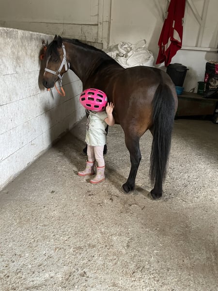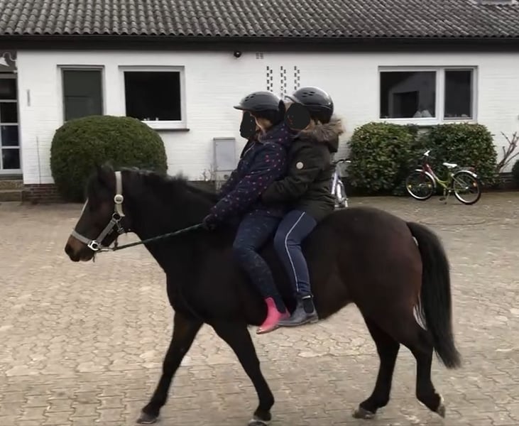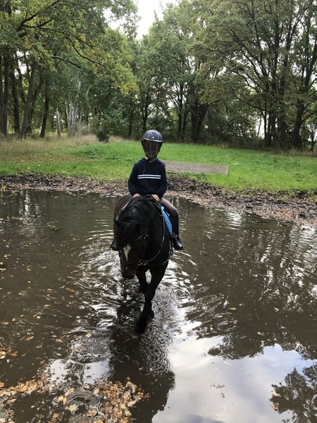 Our Welsh A pony mare "Mirte" has unfortunately become too small for our son. We would like to find her a new home with a family that has small children. Mirte is a very beautiful 11-year-old Welsh A mare. She is bay and stands 122 cm tall. She has a wonderful temperament and is absolutely gentle with children. As a lead pony, she stays at the right height, making it very pleasant to ride with small children. Older children can ride her independently in a group on trails. She goes through water on trails, enjoys jumping, and is familiar with the atmosphere of competitions. We can also imagine her as a driving pony (at least we once hitched her to a sled in winter, and she pulled it very nicely). Loading, farrier visits, and dental care are also no problem. Please feel free to reach out with any questions. If interested, I can also send a video.