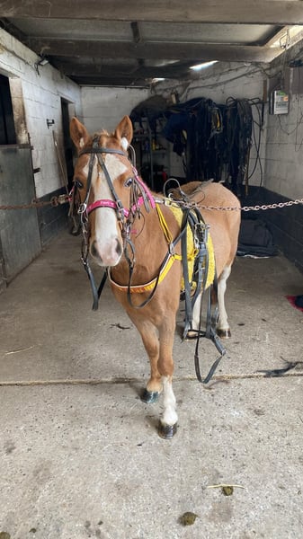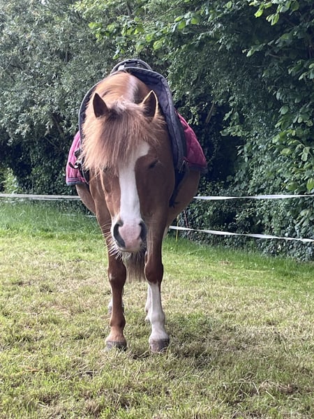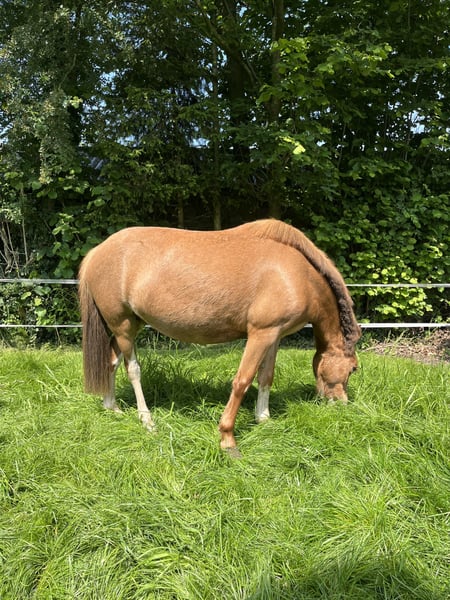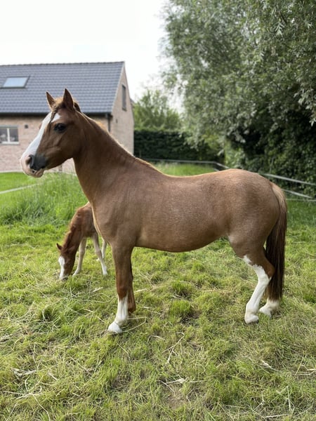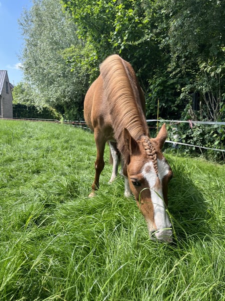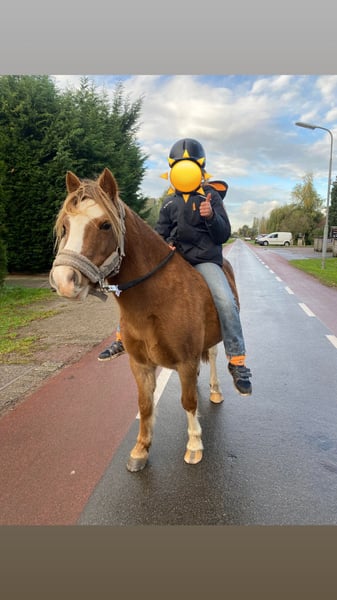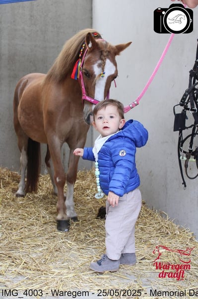 Kalama is a chestnut Welsh-A pony mare, standing at 1.17 meters at the withers. In the past, Kalama was used in a very versatile manner. She has been ridden, participated in liberty dressage, often went on outdoor rides, attended riding lessons at the riding school, and even competed in a few trot races in a sulky. Kalama has also foaled twice. On both occasions, she was the perfect picture: a smooth, easy delivery and a very attentive, protective mother to her foals.