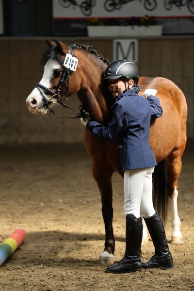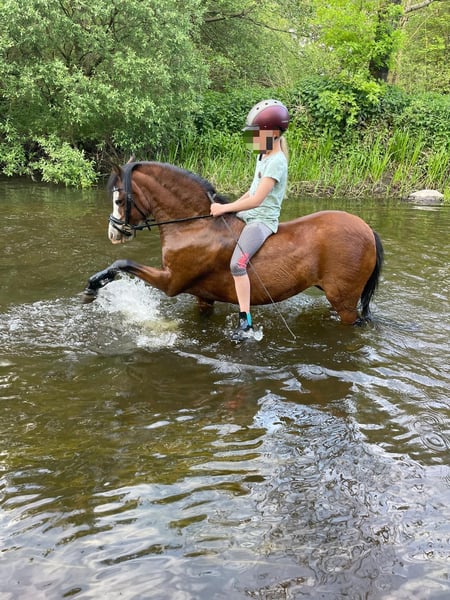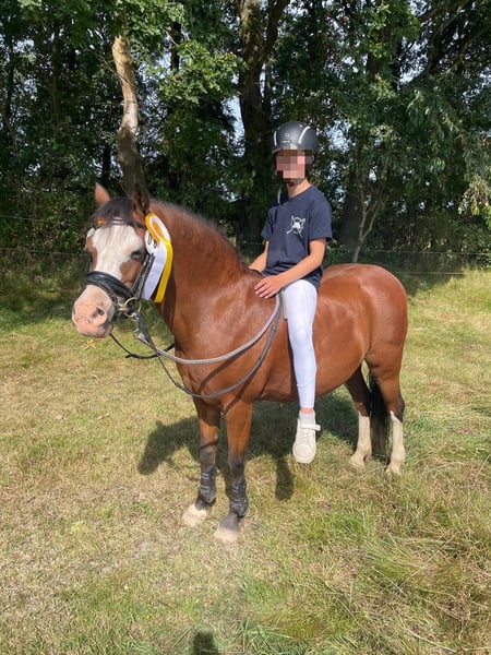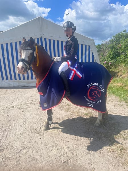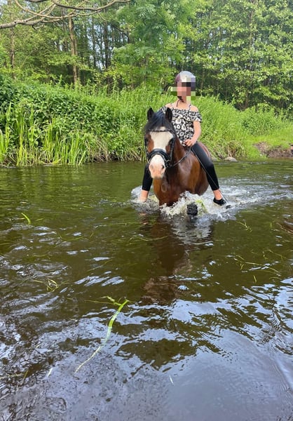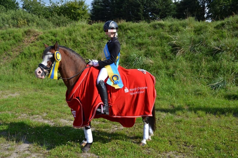 Wegen Umstieg sucht unser bildschönes Herzenspony eine neue Familie zum glücklich machen! Schweren Herzens suchen wir für unsere 2011 geb. Welsh A Stute ein neues, liebevolles Zuhause. Diese Entscheidung fällt uns unendlich schwer und erfolgt ausschließlich, weil die Reiterin leider herausgewachsen ist. Unsere Ponystute ist ein echter Allrounder und ein absoluter Verlasspartner sowie Lehrmeister - ehrlich, zuverlässig und mit bestem Charakter. Sie hat mit ihrer Reiterin alle Situationen souverän und zuverlässig erarbeitet und ist dabei absolut nervenstark. Die beiden haben zahlreiche Turniererfolge erzielt, wurden dieses Jahr Kreismeister in der Dressur LK7 und haben den 11. Platz beim Landesvierkampf erreicht. Auch Übernachtungsturniere wie z.B. das Landesbreitensportturnier in Bad Segeberg oder auswärtige Lehrgänge meistert sie problemlos. Man kann sie ohne Sattel sowie gebisslos reiten; dies haben die beiden beim Gebisslosen Rittigkeitswettbewerb und verschiedenen Prüfungen "ohne Sattel" erfolgreich gezeigt. Sie ist vielseitig einsetzbar: geht allein und in der Gruppe ins Gelände sowie ins Wasser und schwimmt im Sommer auch Mal mit ihrer Reiterin. Sprünge auf dem Geländeplatz, Ringreiten, Reiterspiele, Kostümreiten oder Bodenarbeit, RA 8 bis RA 5, in der Halle oder draußen, sie ist ein absolutes Multitalent. Sie lässt sich problemlos verladen, ist brav beim Schmied und Tierarzt, selbstverständlich komplett durchgeimpft und entwurmt. Bei uns steht sie nachts in einer Box und tagsüber in einer großen gemischten Herde, in der sie sich als Kleinste mit 1,21 m, sehr gut behauptet; so entscheidet sie auch bei fremden Pferden unter dem Reiter nach Sympathie, wo sie ihren Standpunk durchaus festmacht. Kurz gesagt: eine wahre Lebensversicherung in allen Lebenslagen. Natürlich darf man nicht vergessen, dass sie ein Pony ist - mit einem gesunden Maß an eigenem Kopf und einer Portion Charme, die sie einfach unverwechselbar macht. Gerade das macht sie so besonders und liebenswert. Fürs Probereiten nehmen wir 30 EUR. Bei Fragen oder Terminvereinbarungen wenden Sie sich bitte an Frau Nikulka unter der Mobilnummer 0171-8946304