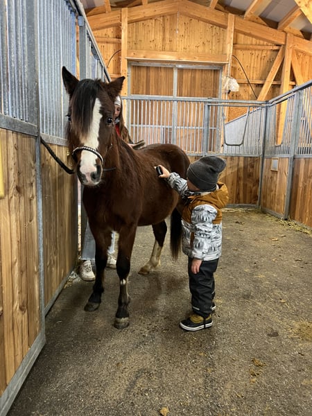 Te koop: een betoverend driejarig Welsh Mountain Pony merrie met veel potentieel en uitstekende afstamming. Ons zelfgefokte talent valt niet alleen op door haar charmante karakter, maar ook door haar correcte bouw en haar geweldige opfok in een gemengde kudde. Ze werd als veulen gepresenteerd op het Alpenlandse Veulenchampionship en werd bekroond als premieveulen - een bewijs van haar kwaliteit! Afstamming: Vader: Leandro Moeder: Ster-merrie (schimmel) uit een gerenommeerde lijn Kerngegevens: • Leeftijd: 3 jaar • Schofthoogte: 119 cm • Ras: Welsh A / Mountain Pony • Geslacht: Merrie • Kleur: Donker vos • Papieren: BZVKS De merrie is leeftijdsgebonden onbeleerd, maar kent de hoefsmid, laat zich probleemloos overal aanraken en houdt van poetsen. Ze is braaf in de omgang, nieuwsgierig, mensgericht en toont zich zeer leergierig. Regelmatig ontwormd, gevaccineerd en altijd gezond - een uitstekend verzorgd jong pony met de beste voorwaarden voor verdere opleiding als kinderpony, recreatiepartner of showpony. Ze heeft de zomers bij ons op de almen doorgebracht. Bij interesse ontvangen we graag een bericht of een telefoontje - bezichtiging op afspraak mogelijk!