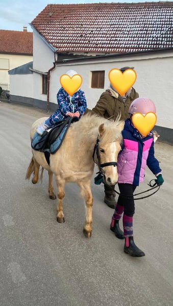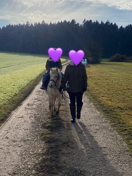 Unsere liebe, aufgeschlossene und menschenbezogene Welsh-Mountain-Pony-Stute „Bella“ sucht ein gutes Zuhause. Bella ist 7 Jahre alt, äußerst erfahren im täglichen Umgang und wahrlich ein fantastisches Kinderpony! Bella (118cm groß) verfügt über zahlreiche Erfahrung mit Kindern verschiedenen Alters und besticht durch ihren stets aufrichtigen Charakter. Nebstdem hat Bella viel Freude am Springen, liebt schöne Ausritte und durfte bei uns diverse Bodenarbeit-/Zirkuslektionen erlernen. Das Löwenherz kennt den kompletten Straßenverkehr und ist äußerst anständig in jeder neunen Situation. Bella ist sowohl mit der vielseitigen Arbeit auf dem Reitplatz, dem Ausreiten alleine und in der Gruppe, der Longe, Spaziergängen im Gelände, etc. bestens vertraut. Zudem kennt sie sowohl die Boxen-, als auch die Offenstallhaltung und steht täglich im gemischten Herdenverband auf der Weide. Wir wünschen uns für Bella ein sehr gutes Zuhause und werden sie ausschließlich in das beste Umfeld abgeben! Bei jeglichen Fragen können Sie uns gerne jederzeit unter der 01776853138 kontaktieren.