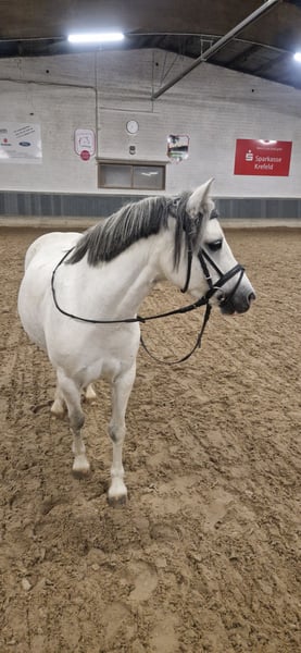 Sehr schweren Herzens suchen wir für unsere süße, schicke Maya ein neues Zuhause, in dem sie genauso geliebt wird wie bei uns. Maya ist eine reinrassiges Welsh Mountain Pony mit einem Stockmaß von 122cm. Sie hatte bereits ein Fohlen und wäre auch für die Zucht interessant. Bei uns ist sie ein heißgeliebtes Reitpony, dass inzwischen auf einem guten E Niveau sowohl in der Dressur, als auch im Springen ausgebildet ist. Sie kann auch Seitwärtsgänge, fliegende Galoppwechsel und noch vieles mehr. Sie ist ein sehr gescheites Pony und immer lernbereit. Einen Handarbeitskurs hat sie mit Bravour gemeistert. Typisch Welsh ist sie Fremden gegenüber immer etwas reserviert, überwindet dies aber nach relativ kurzer Zeit. Im Training springt sie bis 85 cm, das haben wir auf dem Turnier aber noch nicht getestet. In der Dressur lässt Maya sich sehr fein reiten und kennt die korrekte Hilfengebung über Sitz und Schenkel und geht dann sehr schön am Zügel. Sie geht auch problemlos ausgebunden. Meine Nichte lernt gerade an der Longe auf ihr reiten. Dabei ist sie sehr brav. Es wäre dennoch schön, wenn sie auch in Zukunft nicht nur von Anfängern geritten würde. Maya kann auch ohne Sattel, mit Pad, mit Knotenhalfter und ohne Zügel nur über Sitz und Schenkel geritten werden. Auch einen Schulterstand kann man auf ihr machen, ebenso auf ihrem Rücken stehen oder Hinten runter rutschen. Sie bleibt wie eine 1 stehen und macht überhaupt nichts. Im Wald ist Maya absolut entspannt, kann am langen Zügel geritten werden und geht auch an Rehen und Wildschweinen, ohne mit der Wimper zu zucken, vorbei. Sie macht auch gerne geführte Spaziergänge und ist hierbei auch von kleinen Kindern absolut gut zu händeln. Sie ist ein absolut braves und ehrliches Pony, dass aber auch mal ihren Kopf durchsetzen möchte. In der sich zum Ende neigenden Turniersaison ist Maya nie ohne Schleife von einer WBO Prüfung nach Hause gekommen. Sei es mit meiner Nichte im Führzügelwettbewerb, oder mit meiner Tochter in Reiterprüfungen, Dressurreiterprüfungen, Caprilli-Tests und Springreiterwettbewerben. Sie ist als Turnierpony eingetragen und ist entsprechend geimpft. Maya wird nie böse, steigt nicht, buckelt nicht, tritt nicht, beißt nicht. Sie testet aber ganz gerne mal ihren Reiter, indem sie versucht das Tempo und die Richtung anzugeben. Wir wünschen uns ein Kind, dass Lust hat ein Pony fein reiten zu lernen, oder auch gerne schon kann. Unterstützung sollte am Besten vorhanden sein. Da Maya etwas Zeit braucht sich auf ihren Reiter einzustellen, sehen wir sie nicht im Schulbetrieb und möchten sie auch nicht über einen Händler verkaufen, sondern ganz in Ruhe den passenden Menschen für sie finden. Dies ist kein Notverkauf und wir geben sie nur in allerbeste Hände.
