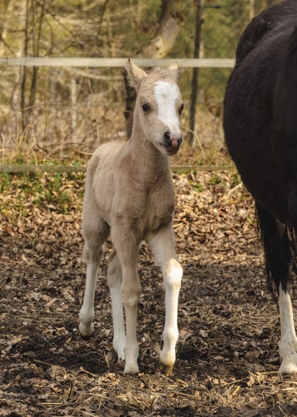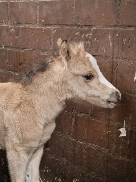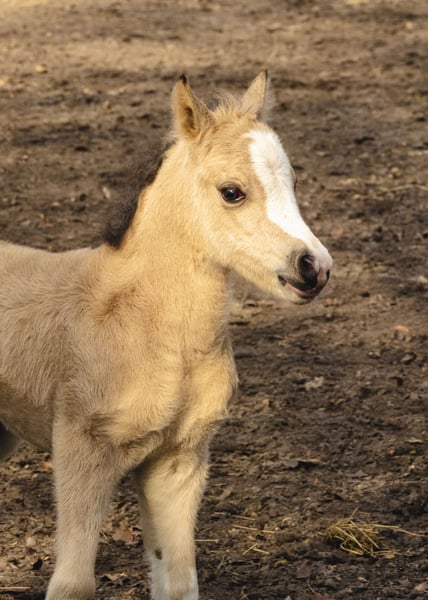 Schweren Herzens verkleinere ich meinen Pferdebestand wegen eigenem Nachwuchs erheblich und gebe in dem Zuge auch dieses wunderschöne neugeborene Fohlen ab: Rosentals H…… (hier darf sich noch ausgetobt werden, wenn es schnell geht!!) ist wirklich so unheimlich süß, dass einem glatt die Worte fehlen. In begehrter Buckskin Farbe (Braun Isabell) mit sehr viel Weiß und sogar noch ein paar weißen Tupfern neben ihrer breiten Blesse ist sie definitiv ein kleiner Hingucker! Noch ist sie leider sehr schüchtern aber, da meine Ponys in meiner Kinderreitschule stehen, wird sich dieser Umstand sicher ganz bald legen! H bekommt volles Mecklenburgisches Papier für Welsh A. Ihr Vater ist aktuell noch HB2 da wir es aus Zeitgründen noch nicht zur HLP geschafft haben. Er ist aber dieses Jahr zur Vorbereitung angemeldet und wir sind sicher, er wird sich dort - wie überall - von seiner besten Seite präsentieren. H kann im Alter von 6 Monaten von der Mama abgesetzt erworben werden oder schweren Herzens aber sehr gern auch zeitnah mit der Mama gemeinsam in ihr neues zu Hause ziehen. Bilder von ihr zeigen sie Tag der Geburt und 2 Tage alt
