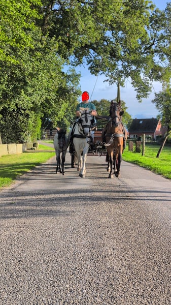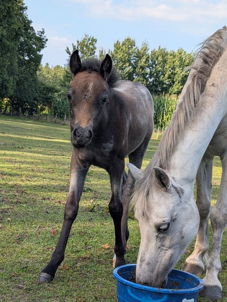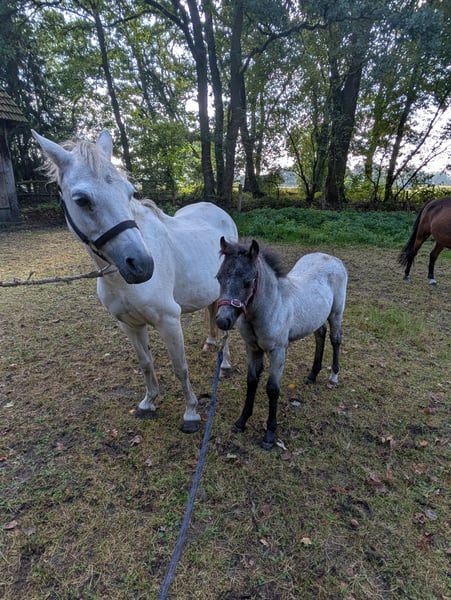 We are selling a Welsh A filly, born on June 22, 2025. Mother: Grey Father: Black with a white blaze and white hind legs (pictures available upon request) At the time of leaving, she is already familiar with the farrier, is halter-trained, and knows various vehicles. She has been driven once for 15 minutes and did really well despite the presence of cars, bicycles, and pedestrians. If you are interested, feel free to get in touch and meet the little one.