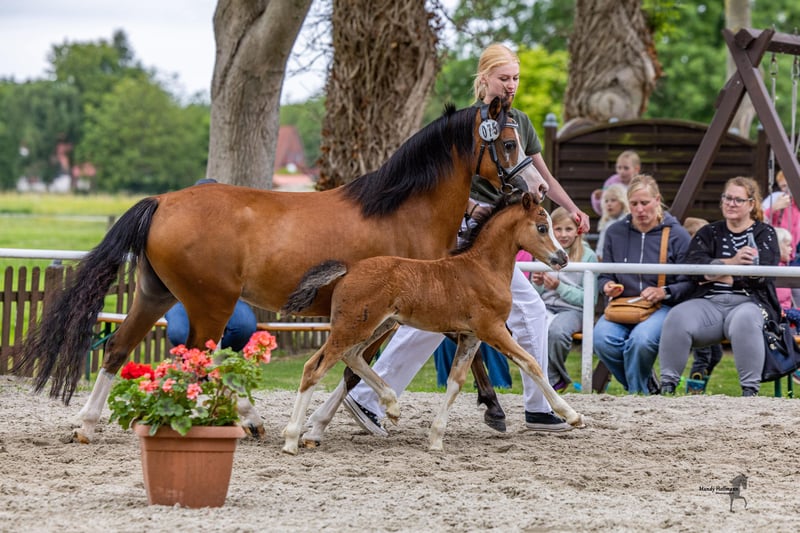 Typstarkes prämiertes Stutfohlen (geb. am 05.06.2025) von Leybuchts Landon WE aus einer Stute von Brynseion Cadivor aus liebevoller Hobbyzucht zu verkaufen. Calida PK besitzt sehr gute Grundgangarten und ist ein absoluter Hingucker. Selbstverständlich ist sie regelmäßig entwurmt und dem Hufschmied vorgestellt. Ich kann mir Calida später super als Kinderpony vorstellen, da auch ihre Mutter von kleinen Kindern geritten und auf Turnieren vorgestellt wird und einen einzigartigen Charakter aufweist. Auch für die Zucht ist sie mit Sicherheit sehr interessant. Sie steht in einer kleinen gemischten Herde, direkt bei uns am Haus und kennt bereits seit Geburt an auch den Umgang mit Kindern. Es handelt sich hier um absolut keinen Notverkauf! Calida wird nur in allerbeste Hände verkauft. Sie dürfte ab Anfang Dezember in ein neues Zuhause einziehen. Falls Ihr Interesse geweckt ist und Sie Calida gerne kennenlernen möchten, können Sie sich gerne unter der Handynummer 0175-9773165 bei mir melden.