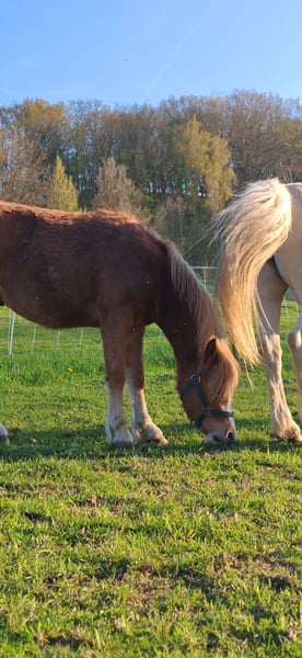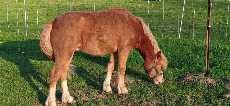 Unser wundervoller Welsh A Hengst ist nun bereit für ein neues Zuhause. Unser "Bernd" ist ein unerschrockener, lustiger und liebevoller kleiner Kobold. Geboren wurde er am 13.05.2025, er ist ein wunderschöner Fuchs mit Blesse und 4 weißen Füßen. Er hat bei uns schon ein bisschen das kleine Fohlen ABC gelernt, läuft ordentlich am Halfter, hat frisch gemachte Hufe und sucht nach lieben Menschen, welche ihn genauso lieben, wie wir. Er lebt bei uns bisher mit 5 weiteren Ponys und Großpferden zusammen. Seit ein paar Tagen stehen unsere Pferde wieder 24/7 auf der Koppel, im Winter haben wir sie nachts in Boxen. Bernd ist absolut robust, topfit, hat volle Papiere, also einen roten Equidenpass mit guter Abstammung(siehe Foto). Beide Eltern sind palominofarben. Er kennt bei uns Hunde, Katzen, Schafe, auch Taktoren, Mopeds usw. stören ihn absolut nicht. Unsere Kinder liebt er und kann auch von ihnen problemlos geführt werden. Natürlich muss man konsequent bleiben, aber das sollten jedem klar sein, der ein 1-jähriges Pferd kauft ;) Unser kleiner Mann hat absolutes Vertrauen zum Menschen, man kann sich problemlos zu ihm in die Box oder auf die Weide setzen und ihn streicheln, das genießt er sehr. Wir freuen uns sehr auf liebe Interessenten, gern können Sie natürlich auch auf einen Kennenlern-und Streichelbesuch vorbei kommen.
