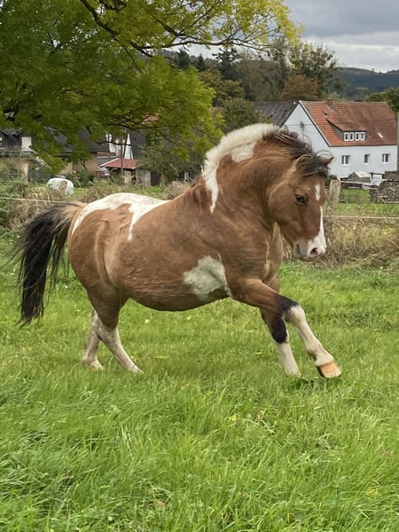 7 jähriger Pony Hengst in Sonderlackierung sucht ein neues 5* Zuhause 05/2018 geboren Mutter Shetland Pony, Vater Welsh Pony Sozial, verspielt & brav im Umgang. Kennt Straßenverkehr, Hufschmied und ältere Kinder. Geht am liebsten ins Gelände, sowohl als Handpferd als auch geritten. Er mag Bodenarbeit & würde sicherlich ein gutes Fahrpony werden. Rehe- und Ekzemfrei, läuft barhuf top. Wichtig ist mir für das neue Zuhause: Ponygesellschaft Offenstall bzw. täglicher Auslauf in der Herde Eine erwachsene Bezugsperson Regelmäßige Beschäftigung Kein reines Kinderpony! Es handelt sich um einen jungen Hengst, der selbstverständlich noch weitere Ausbildung benötigt, deshalb nur an erfahrene Menschen. Weiteres gerne auf Anfrage.