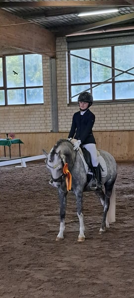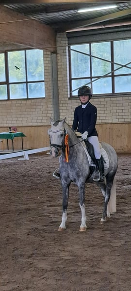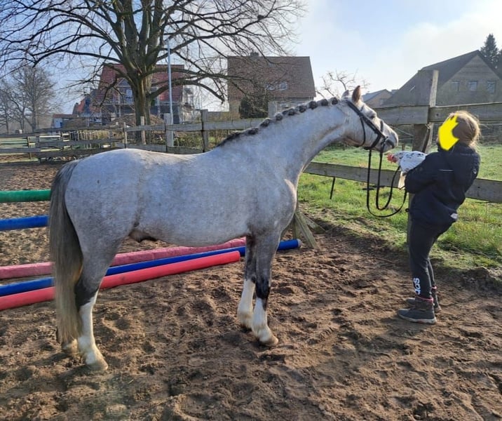 We are selling our beautiful, child-friendly 10-year-old Welsh gelding Johnny, who stands at a wonderful height of 132 cm. Johnny has won numerous show jumping and dressage WBO competitions or has been successfully placed. Due to his dual talent, he excels in both dressage and jumping with his incredible performances. Thanks to his absolute rideability and his patient, loving nature, even the smallest beginner riders can ride and jump him alone in the arena or on the trails. The children can also have fun riding tricks on him. This is possible on the lunge line or even while riding freely. When riding with a pad and neck ring, Johnny remains calm and responds to the slightest aids and the children's voice. Johnny is always reliable and calm. Bucking, rearing, and rushing are completely foreign to him. When riding, he is not easily distracted by the environment, making it easy to ride him in unfamiliar places. He is just as reliable in the field, galloping over stubble fields and going into the water. With his jumping talent, he can easily clear an 80 cm course. He does this with courage and awareness. He does not know how to stop or run past jumps, making it possible for even smaller children to jump him. Always friendly in demeanor, Johnny is very attentive to the children. They can bring him in from the pasture alone, groom him, wash him off, braid his mane, etc., and prepare him for riding. Johnny is absolutely herd-compatible; he stands together with both mares and geldings in our open stable. Any child can load him into the trailer alone, making it fun to go to competitions or take trips with the trailer. We hope he finds a wonderful new home where he will be loved just as much and can teach another little rider how to ride. A valid vet check without findings has already been done for the sale. A treasure that is so rarely found. We would be happy to send videos of him via WhatsApp at 015236768283. Best regards.