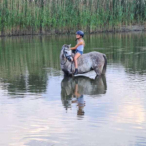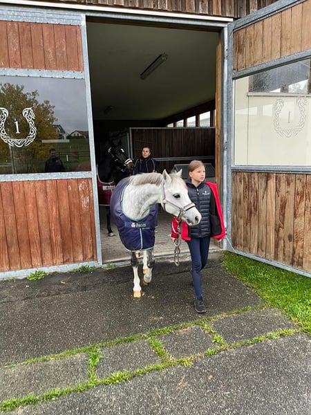 Buscamos un nuevo hogar 5* para nuestro maravilloso semental Welsh-B, ya que lamentablemente mi hija está creciendo y le está quedando pequeño. Ha estado con nosotros durante 4,5 años y ha logrado numerosos éxitos con mi hija (victorias en la competición de A-Dressur y múltiples colocaciones altas, muchas clasificaciones en E, incluyendo el segundo lugar en la final de la Copa de Dressage U14). Ambos también fueron campeones regionales en el tetratlón U12. Está muy bien entrenado y ya domina las lecciones de L-Dressur. Hay muy pocos ponis de su tamaño que tengan este nivel de formación (y puntos Rimondo). Nuestro poni también salta muy bien; le gusta mucho trabajar con barras y cavalettis. Sale al campo solo y en grupo y no tiene vicios como dar saltos o rehuir. Los torneos de fin de semana, los cursos y las vacaciones no son un problema con él; lo hemos hecho a menudo. Se carga sin problemas y es muy fácil de manejar, se porta bien con el herrador y el veterinario. Es un verdadero tesoro en el manejo; incluso los más pequeños pueden llevarlo solos, no tira hacia la hierba, etc. Al cepillarlo es muy cariñoso y muy paciente. Al montar, deseamos un niño que ya sepa montar con seguridad en los pasos básicos, no principiantes absolutos. Si alguien monta con él, también funcionaría. Va bien a la cuerda (también conoce muy bien la doble cuerda) y con martingalas. Ha sido exitoso en la clase de cuerda con una niña pequeña. Es nuestro poni del corazón y nos cuesta mucho venderlo; solo irá a un muy buen hogar. ¡Esperamos su consulta!
