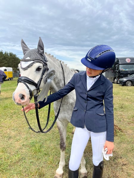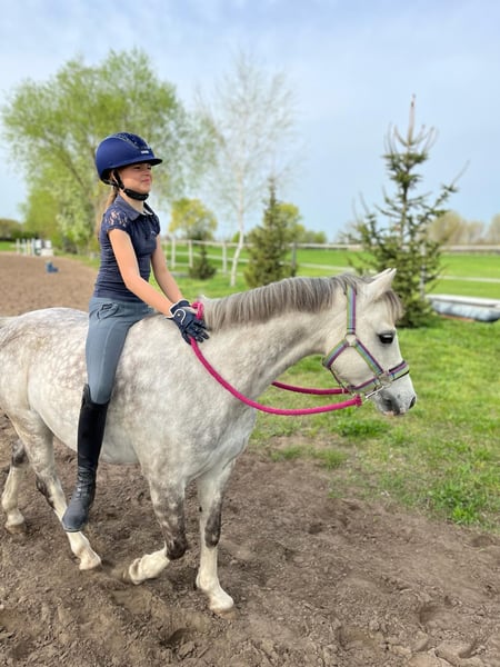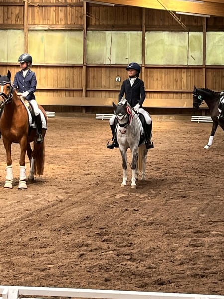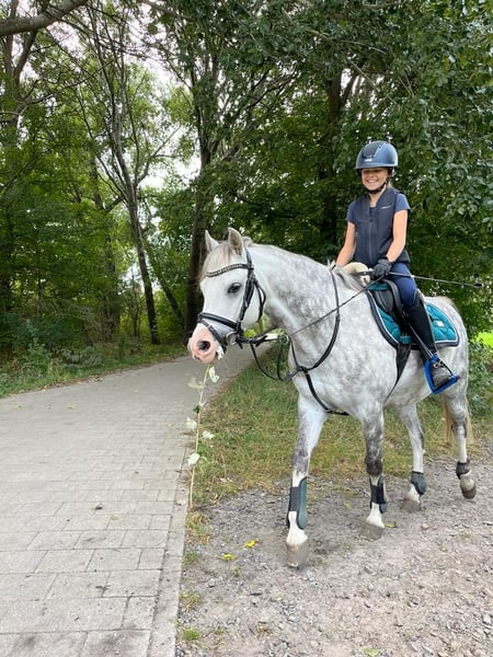 We are looking for a new 5* home for our wonderful Welsh-B gelding, as my daughter has unfortunately outgrown him. He has been with us for 4.5 years and has achieved numerous successes with my daughter (winning A-level dressage and placing highly multiple times, many placements in E-level, including 2nd place in the U14 Dressage Cup final). They were also regional champions in the U12 tetrathlon together. He is very well trained and already masters L-level dressage movements. There are very few ponies of his size that possess this level of training (and Rimondo points). Our pony also jumps very well; he enjoys pole and cavaletti work. He goes out alone and in groups on trails and has no bad habits like bucking or rearing. Overnight tournaments, clinics, and vacations are all no problem with him; we have done this often. He loads easily and is child-friendly, behaves well with the farrier and veterinarian. He is an absolute treasure to handle; even the smallest children can lead him alone, and he doesn't pull for grass, etc. He is very sweet and patient when being groomed. When riding, we are looking for a child who can ride confidently alone in the basic gaits, not complete beginners. If someone rides along, that would certainly be fine as well. He goes well on the lunge (he also knows double lunging very well) and with side reins. He has also been successful in the lead rein class with a little girl. He is our absolute heart pony, and selling him is not easy for us; he will only go to a very good home. We look forward to your inquiry!
